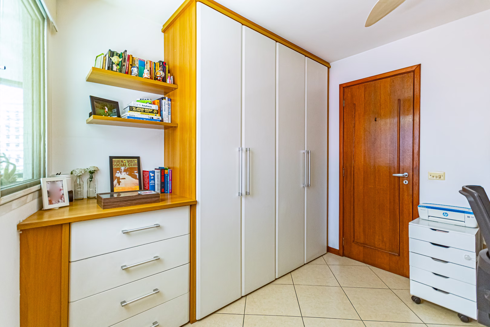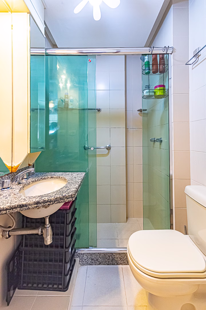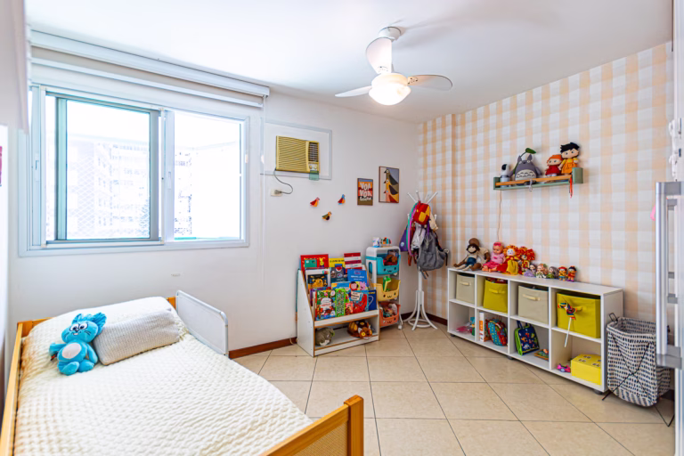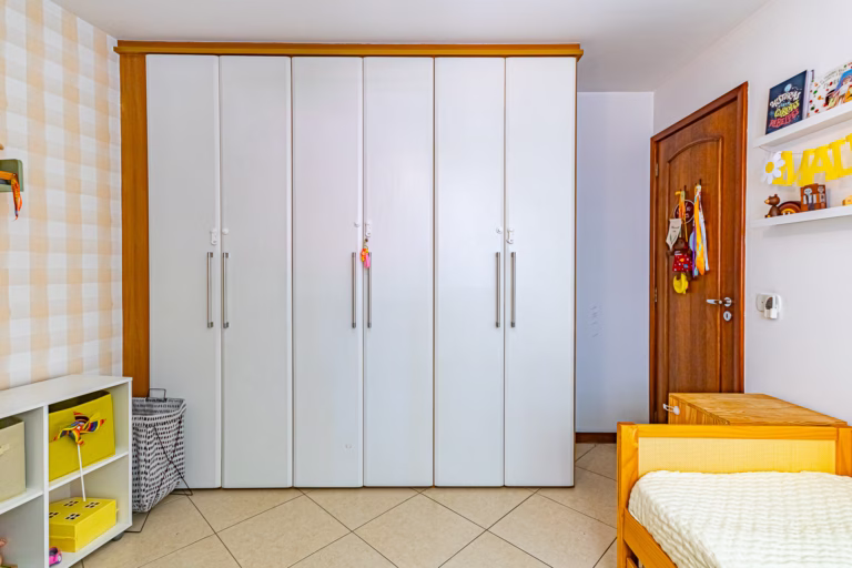 A área íntima é composta por 3 quartos, sendo 1 suíte e mais 1 banheiro social. Todos os quartos têm armários planejados.