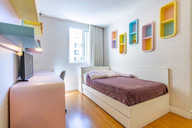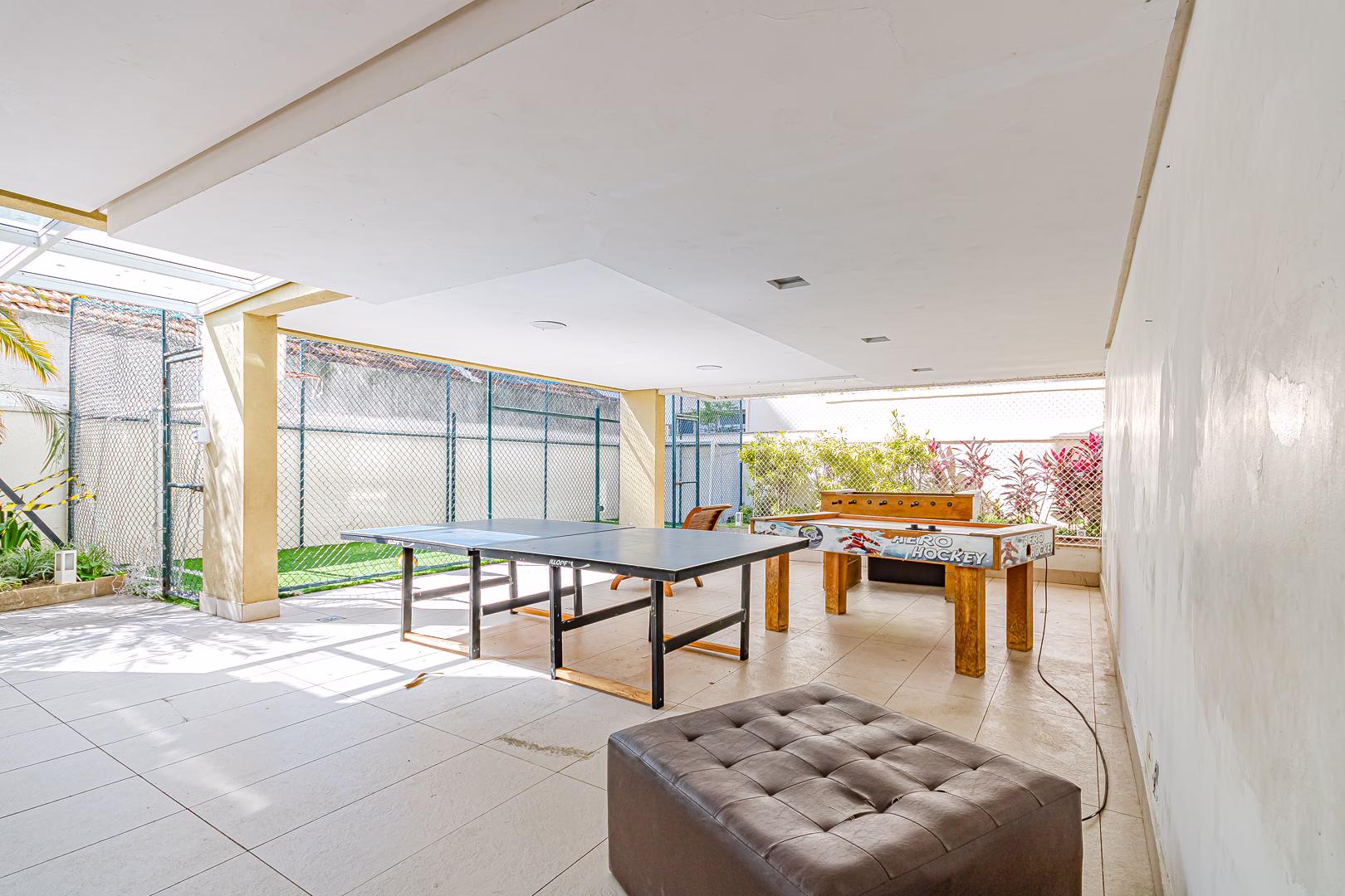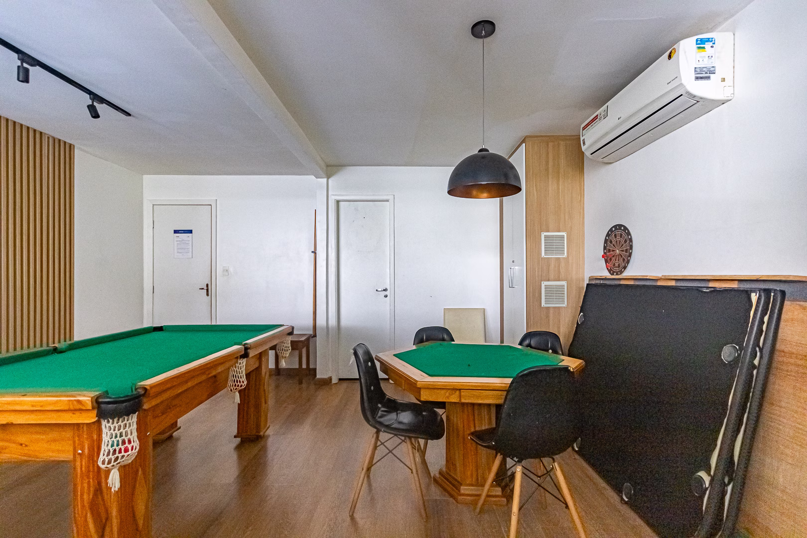 O prédio é de 2012 e tem um lazer incrível com piscina, sauna, spa, academia, salão de festas, espaço gourmet, salão de jogos, lounge teen, brinquedoteca, playground, mini quadra, churrasqueira e forno de pizza.