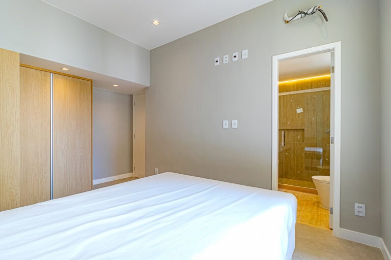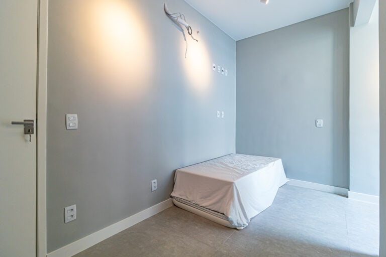 A área íntima é composta por 3 quartos, sendo 1 suíte e mais 1 banheiro social. A suíte fica de fundos e tem vista parcial para o Parque Estadual da Chacrinha. Apesar de não estarem nas fotos, o proprietário vai instalar aparelhos de ar-condicionado tipo split nos 3 quartos.