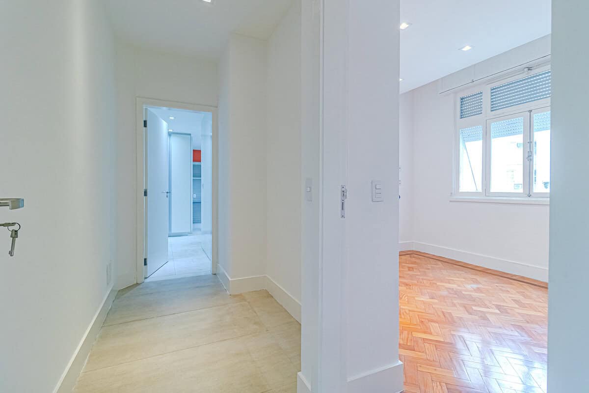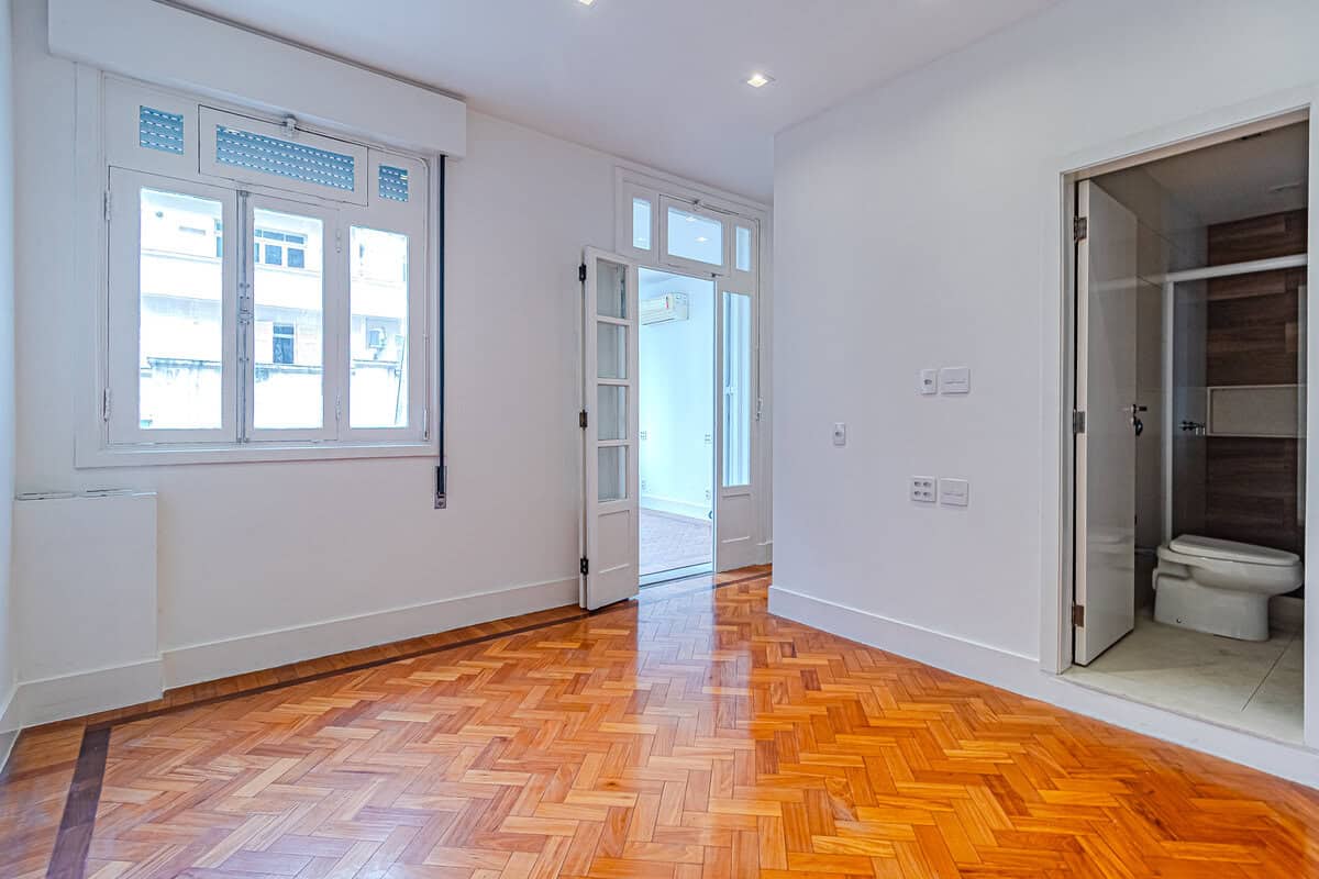 A área íntima é composta por 3 suítes, todas com aparelhos de ar-condicionado tipo split. A suíte máster conta ainda com um closet e outra varanda interna com vista panorâmica para a Barão do Flamengo.