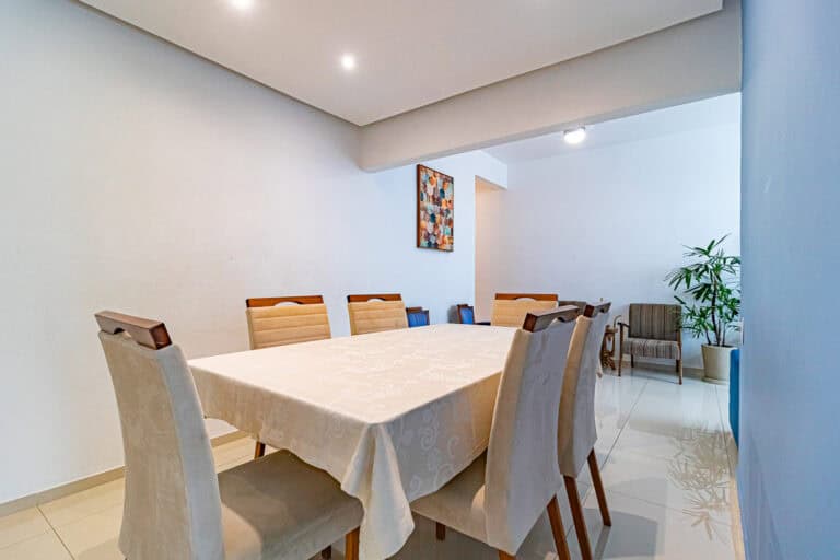 A sala é clara e espaçosa, contando com 2 ambientes – estar/TV e jantar.