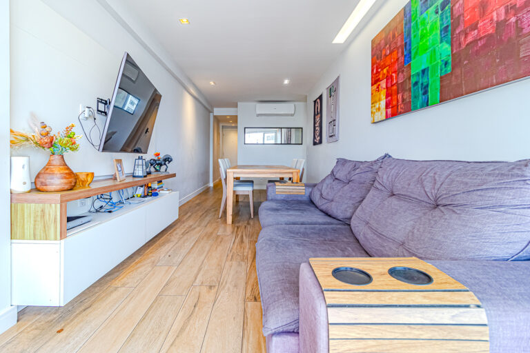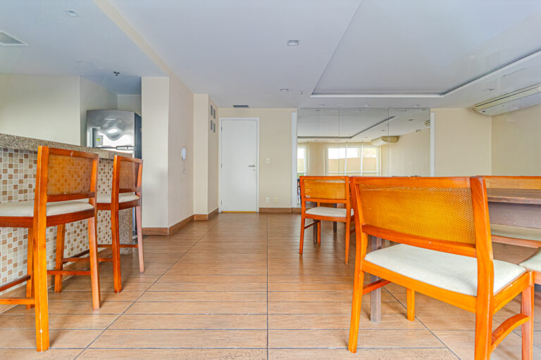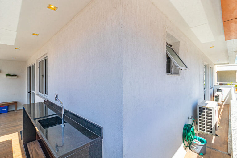 A sala é bastante clara e conta com 2 ambientes, sendo iluminada pelo sol da manhã. Uma varanda deste tamanho é algo raro de se encontrar. Ainda mais uma, que tenha bancada com pia, para os dias em que você quiser fazer um churrasquinho. Há também um lavabo de apoio.