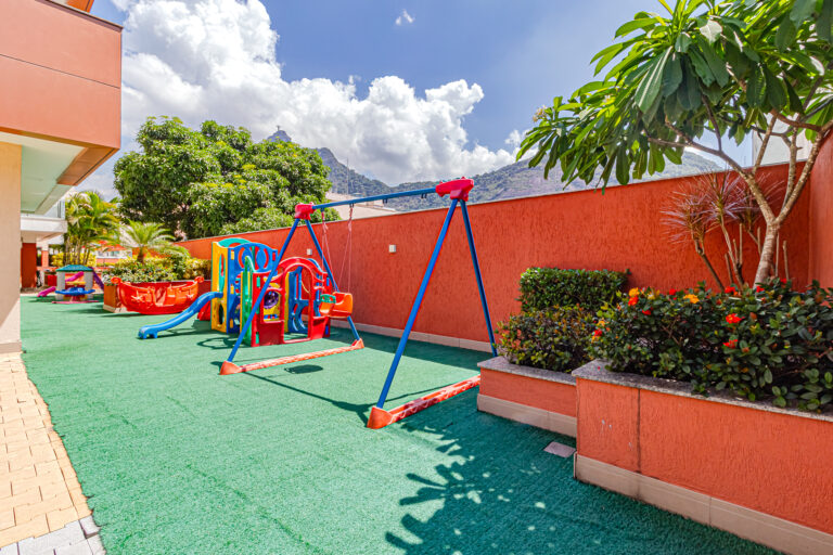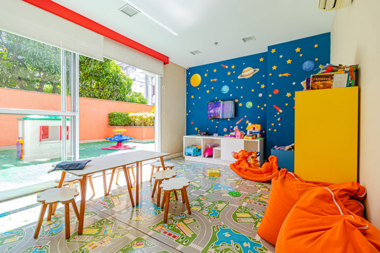 O prédio é de 2015 e tem infraestrutura completa de lazer com piscinas, sauna, spa, academia, salão de festas, salão de jogos, playground, brinquedoteca e churrasqueira.