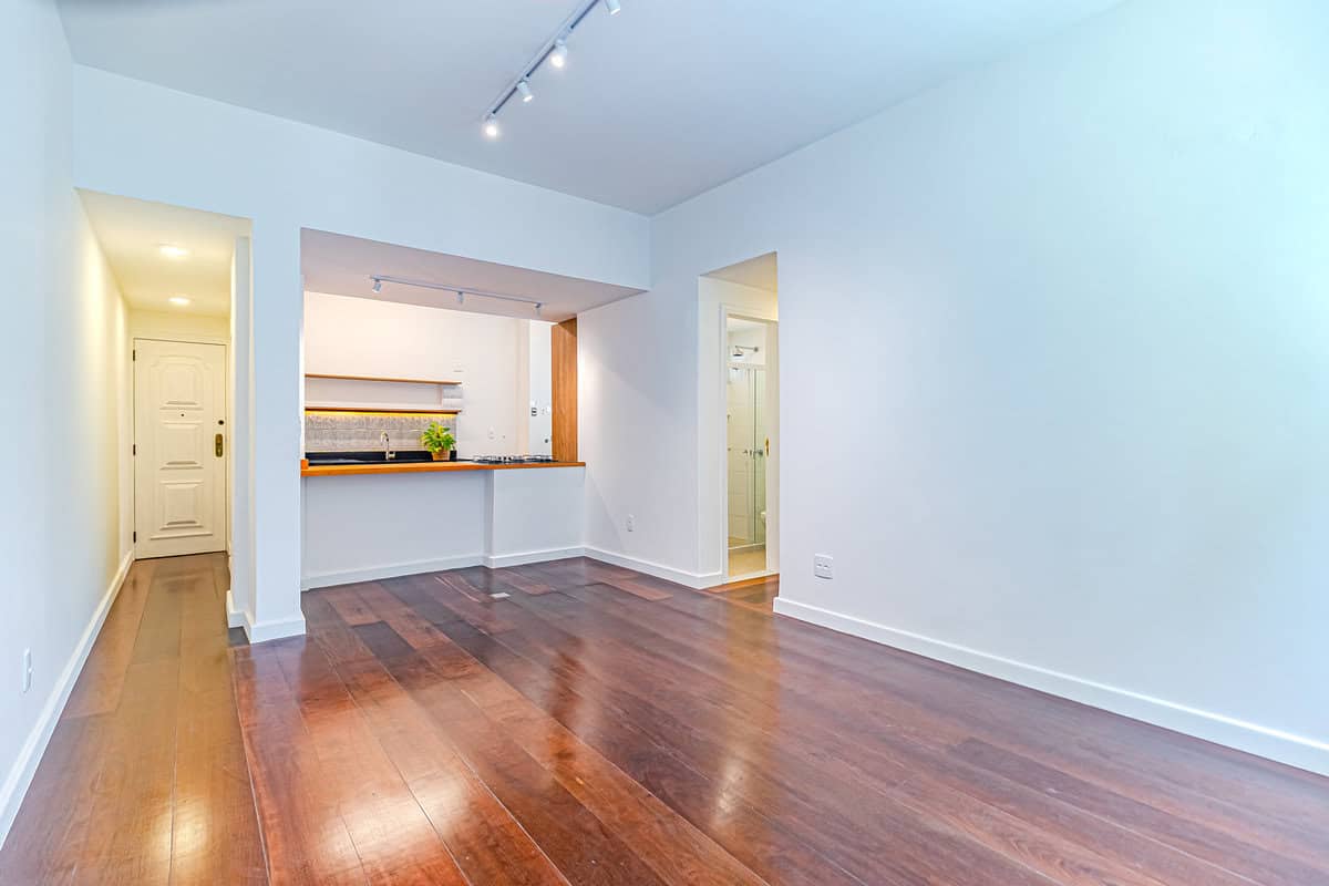 O imóvel de 79m² (juro que parece que tem mais), fica localizado na Rua Lopes Quintas, quase esquina com a Corcovado.