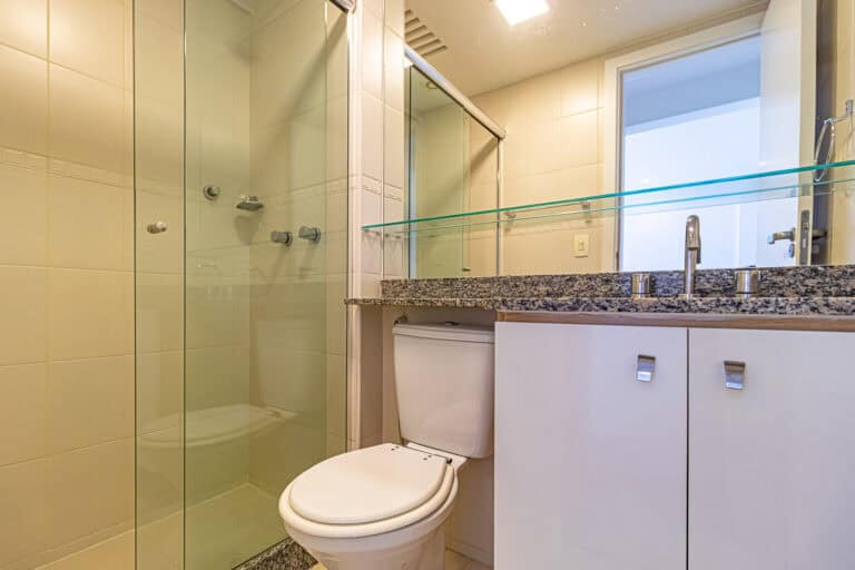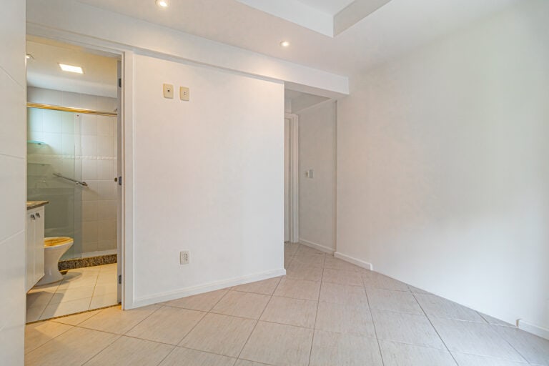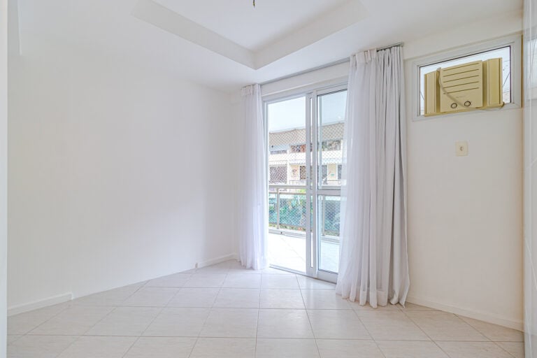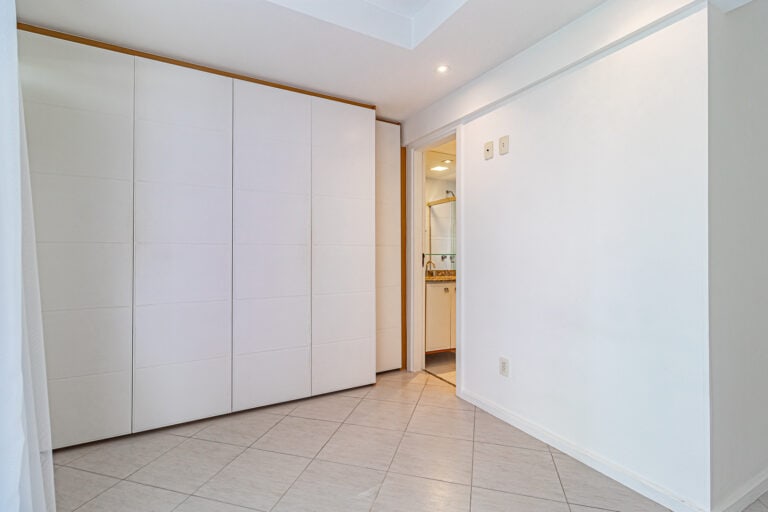 A área íntima conta com 2 quartos bastante claros, sendo 1 suíte com armários e acesso à varanda.