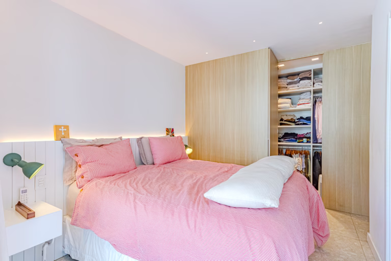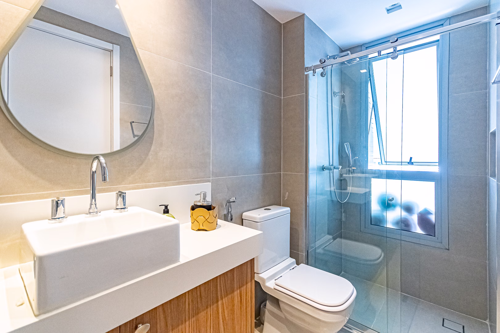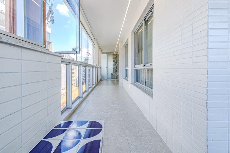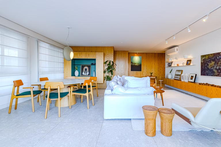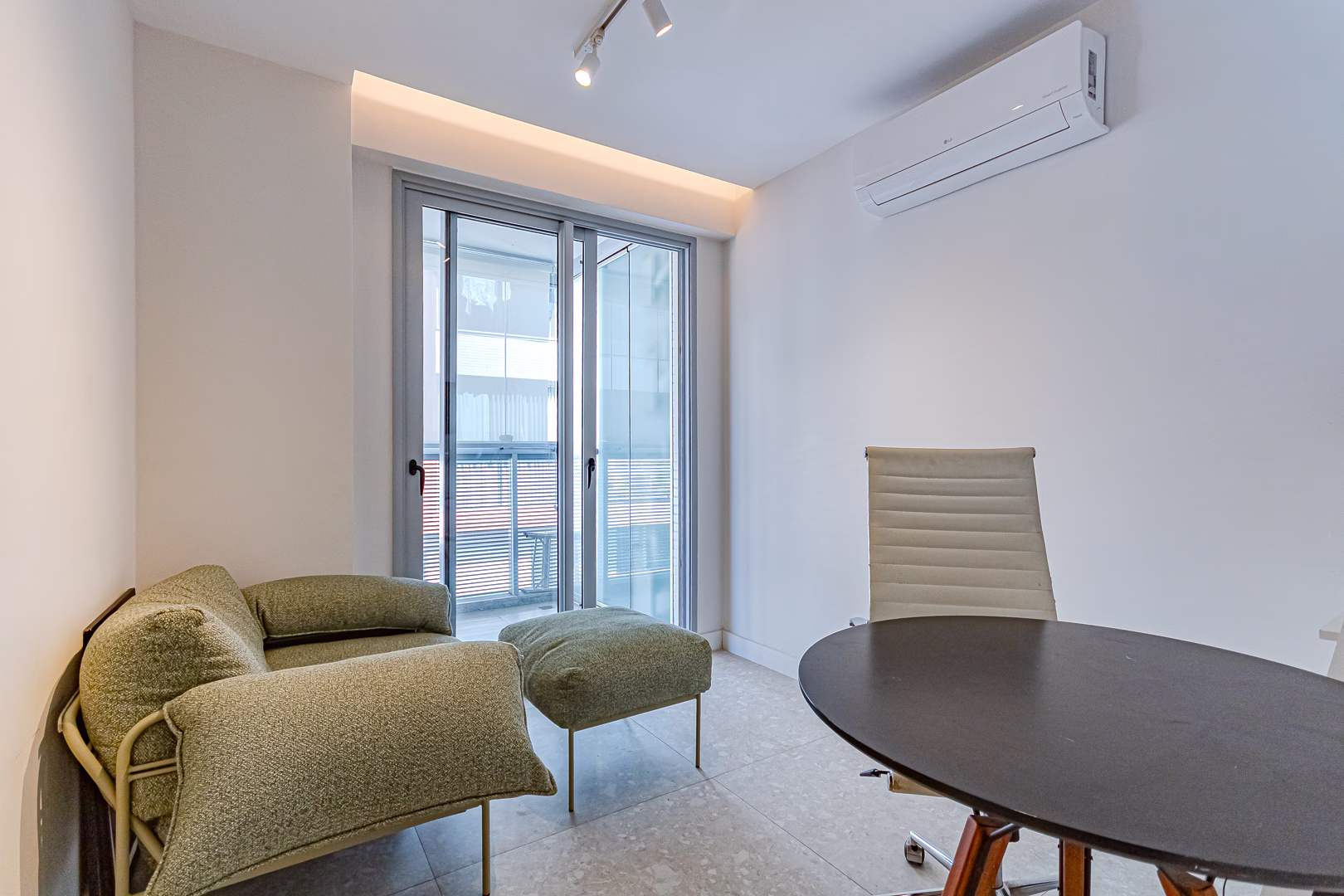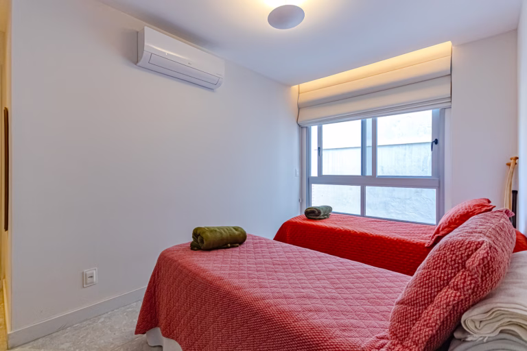 A área íntima é composta por 3 suítes, sendo que a suíte máster conta com closet e tem uma varanda privativa. Toda a marcenaria do imóvel é de primeira linha e os cômodos são climatizados com aparelhos de ar-condicionado tipo split.