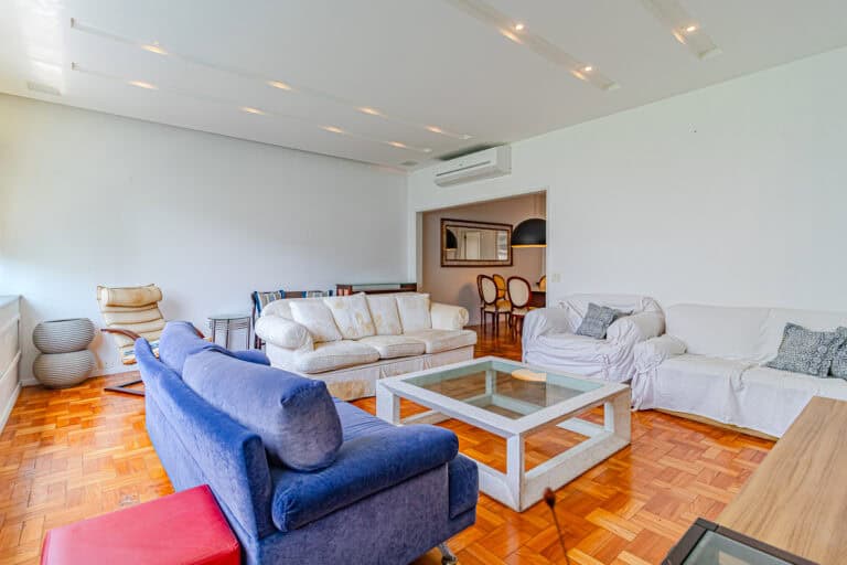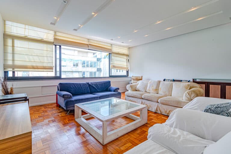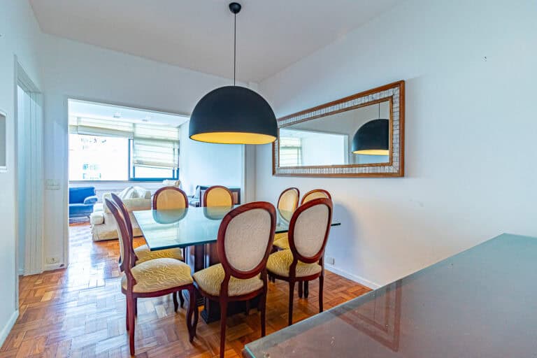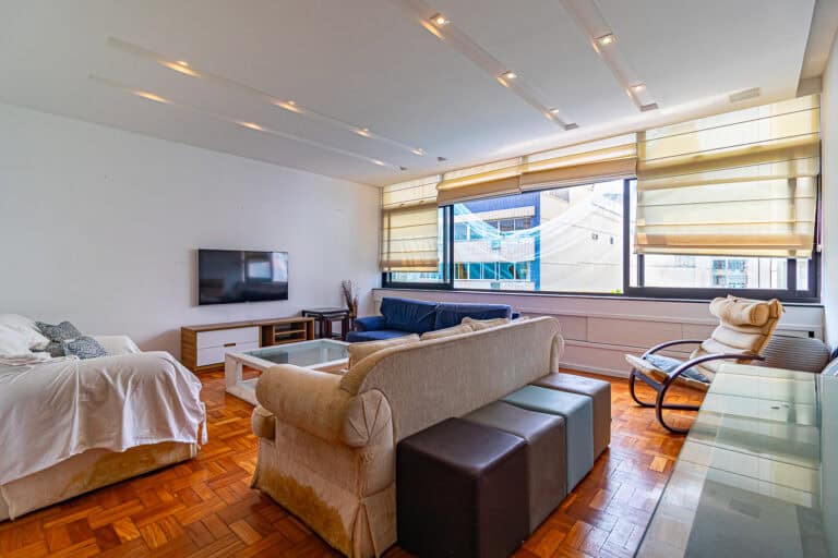 O imóvel de 134m², fica localizado na Rua Prudente de Morais, entre as ruas Henrique Dumont e Paul Redfern, a uma quadra da praia.