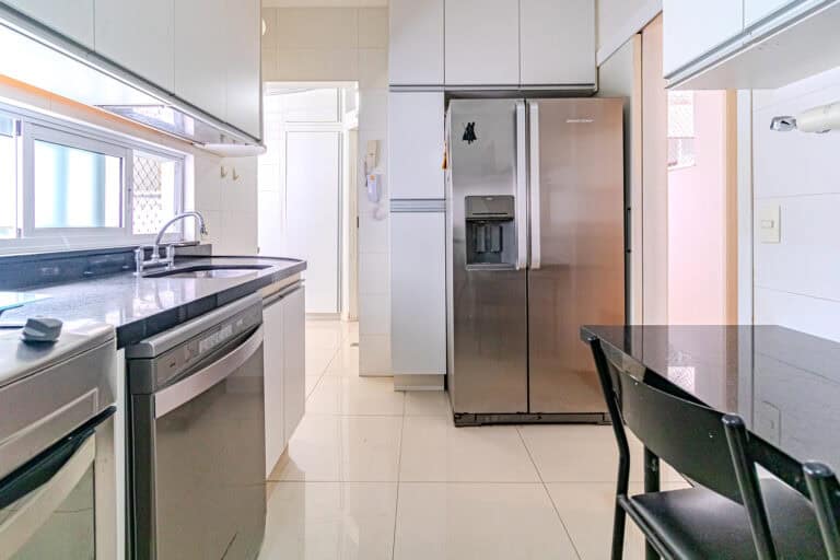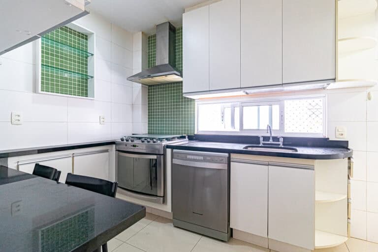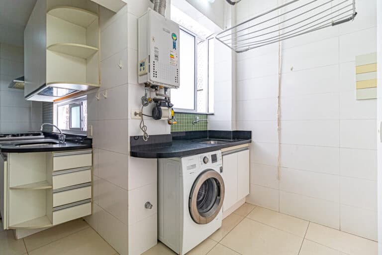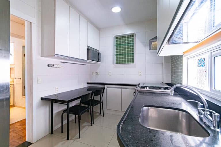 A cozinha é ótima. É bastante clara e totalmente equipada. Conta ainda com uma área de serviço separada, dependência e WC.