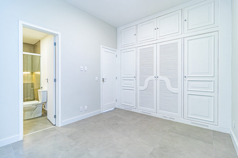 A área íntima conta com mais 2 quartos, sendo 1 suíte e mais 1 banheiro social. Ambos com armários e infraestrutura para a instalação de aparelhos de ar-condicionado tipo split.