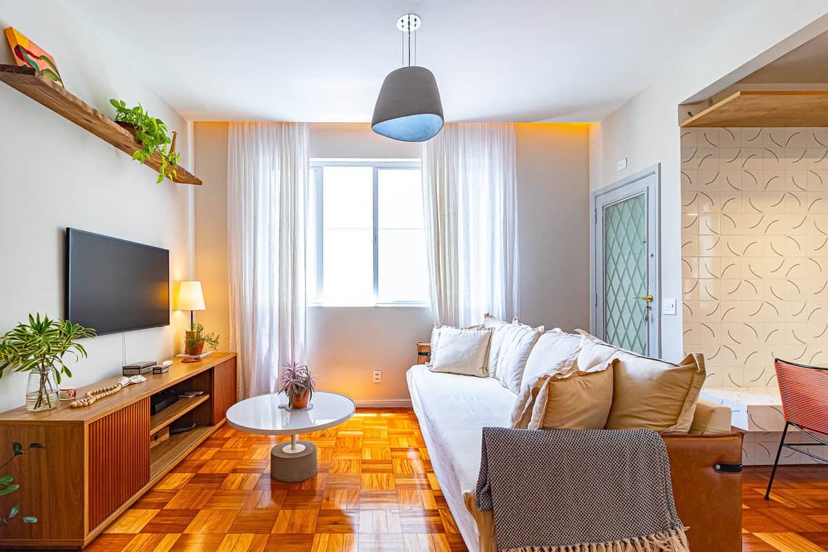 O imóvel de 60m² na planta (57m² no IPTU), fica localizado na Rua Bolívar, pertinho do metrô Cantagalo.