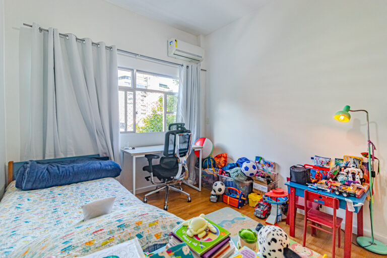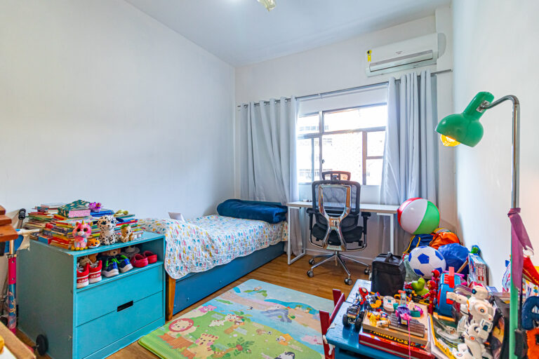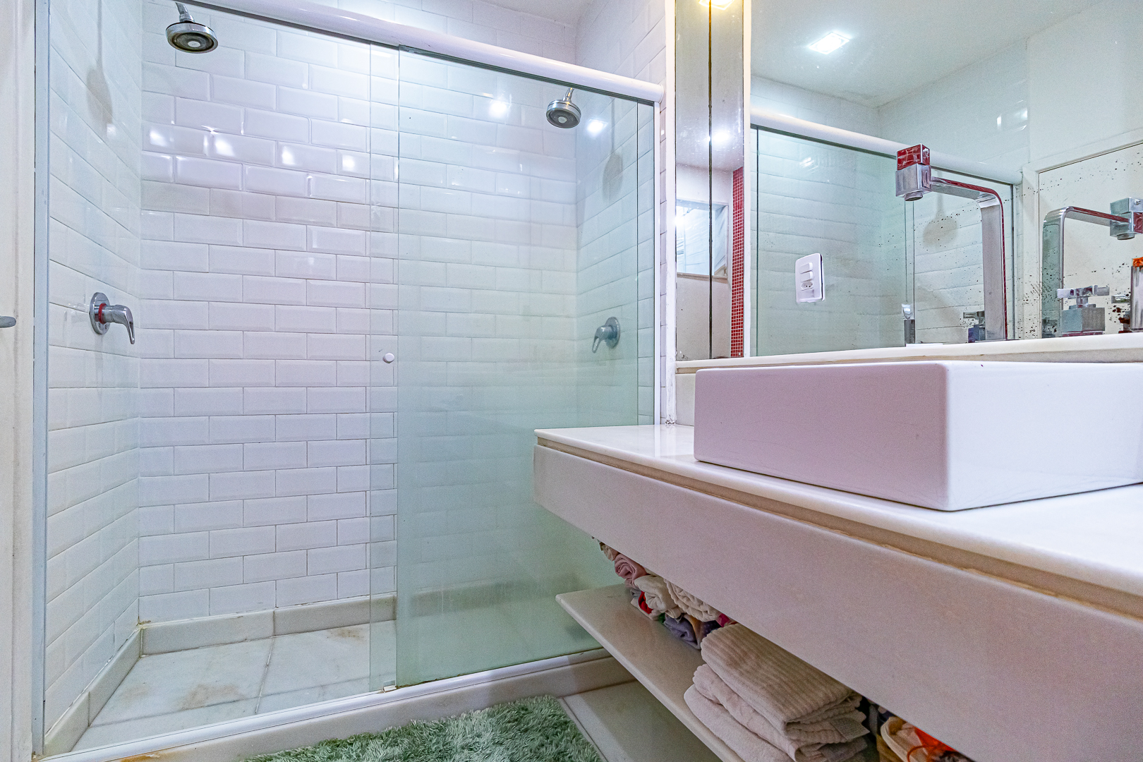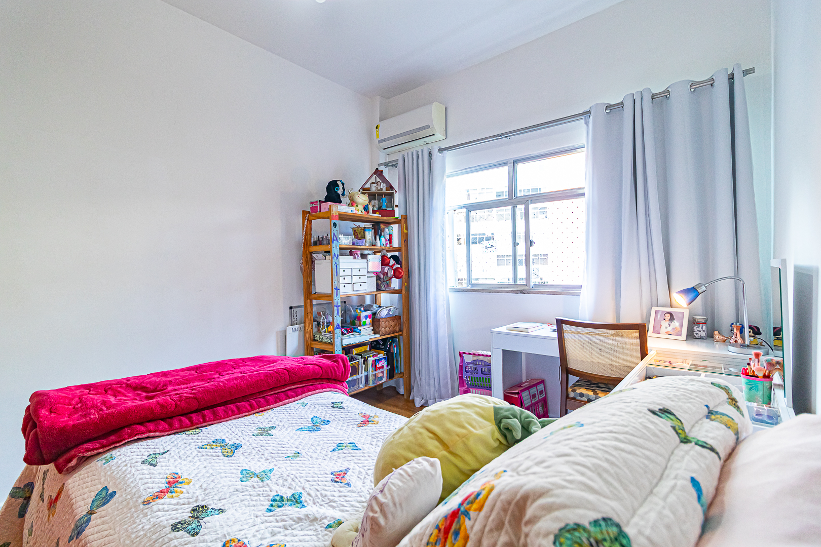 A área íntima é composta por 3 quartos e mais 2 banheiros sociais. Todos os cômodos têm armários planejados e aparelhos de ar-condicionado tipo split.