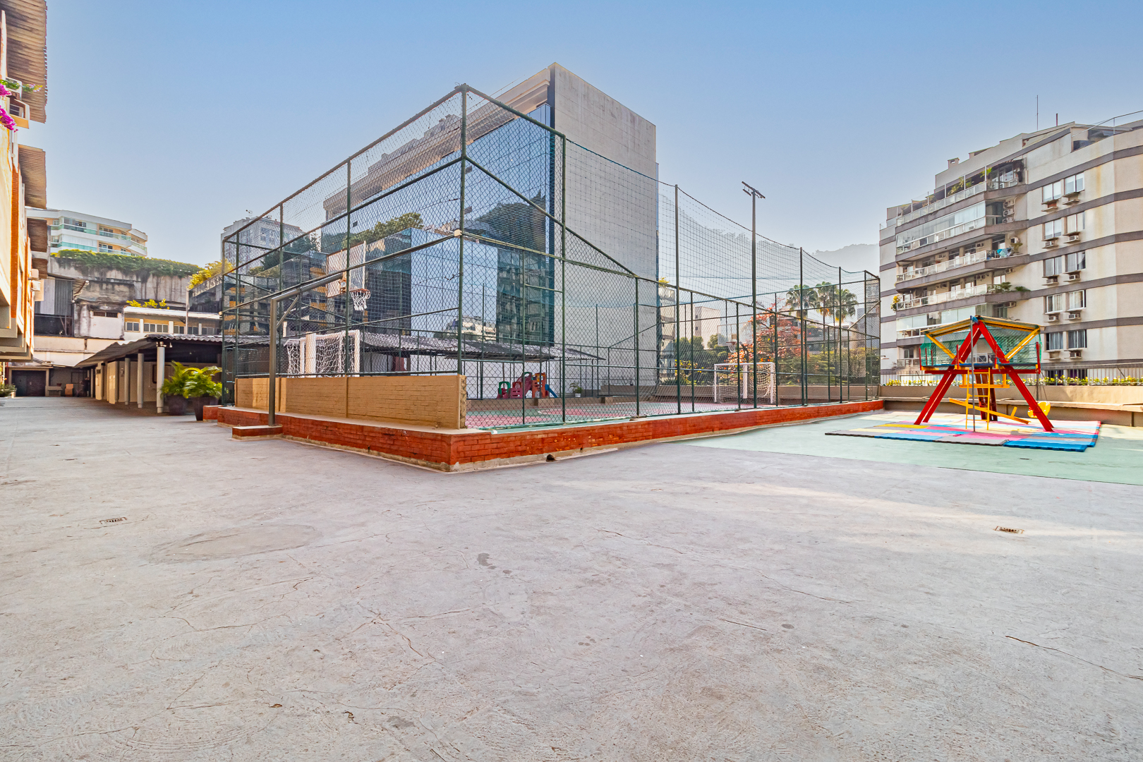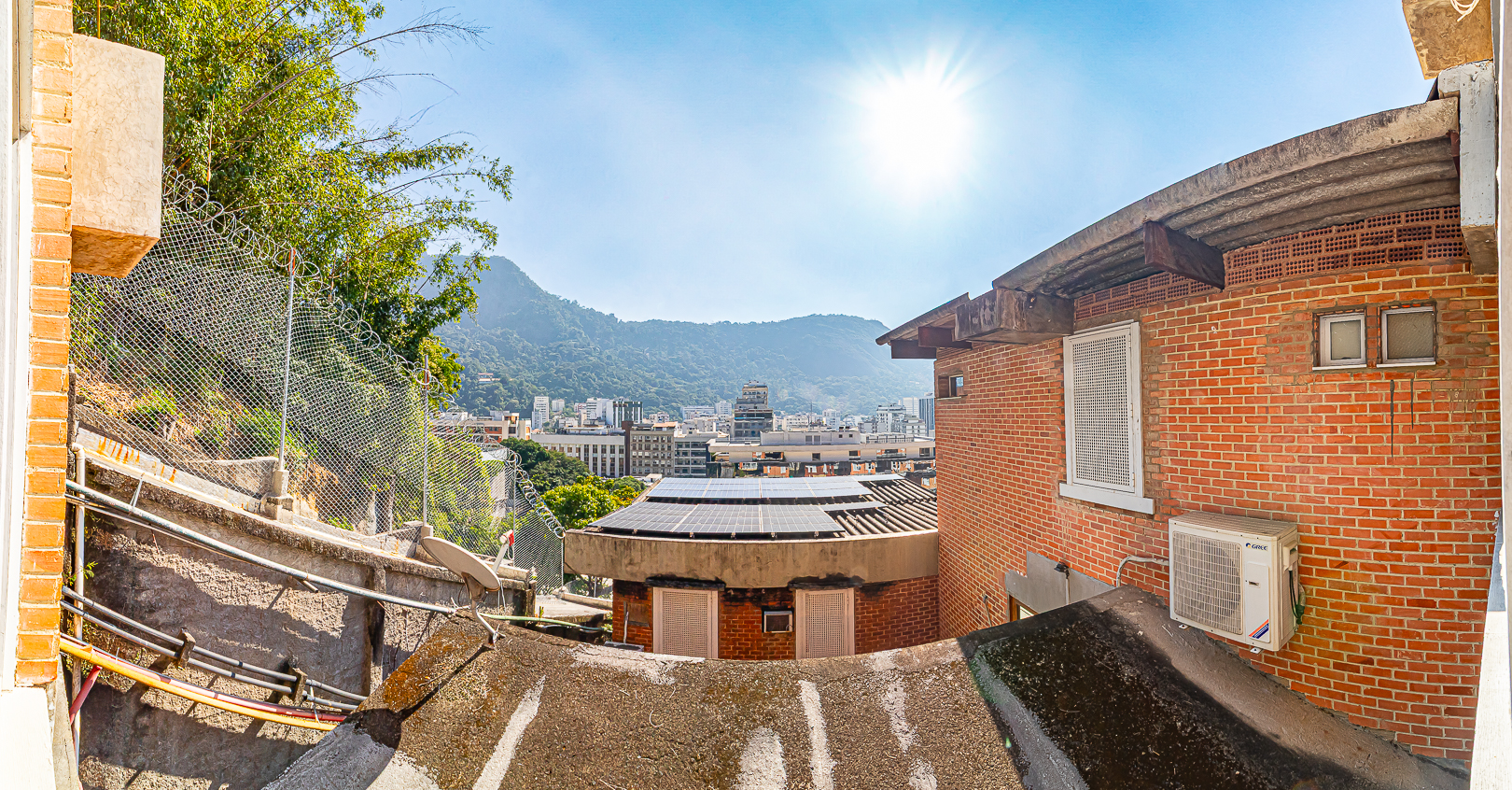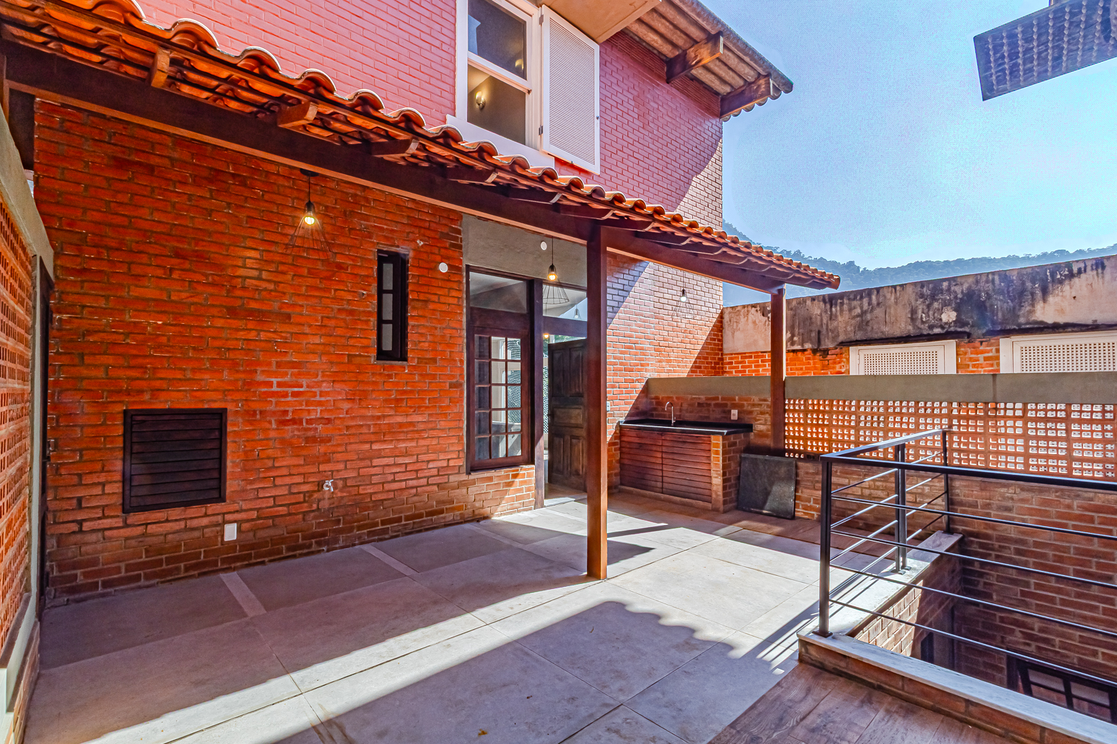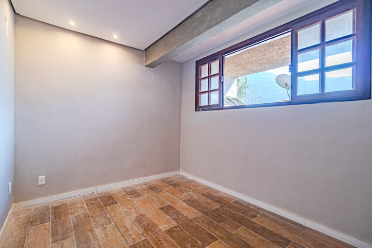 Não sei se você conhece, mas há um condomínio de casas muito interessante em Botafogo. São 11 andares em um plano inclinado, com 5 casas em cada andar, formando 11 pequenas vilas. Mas não se preocupe pois há mais de um elevador para acessar todas as “vilas”. Justamente neste condomínio, conseguimos outra casinha com 4 quartos, cozinha aberta, quintal, salão com jardim de inverno e uma linda vista para o Cristo.