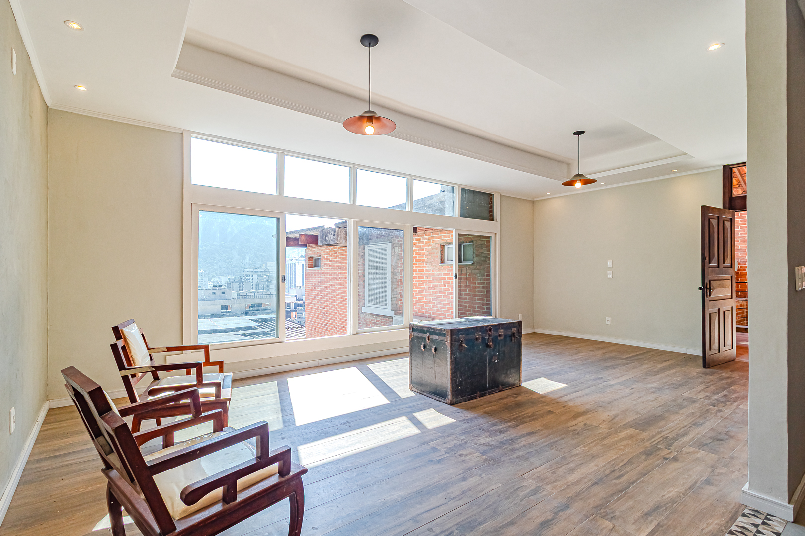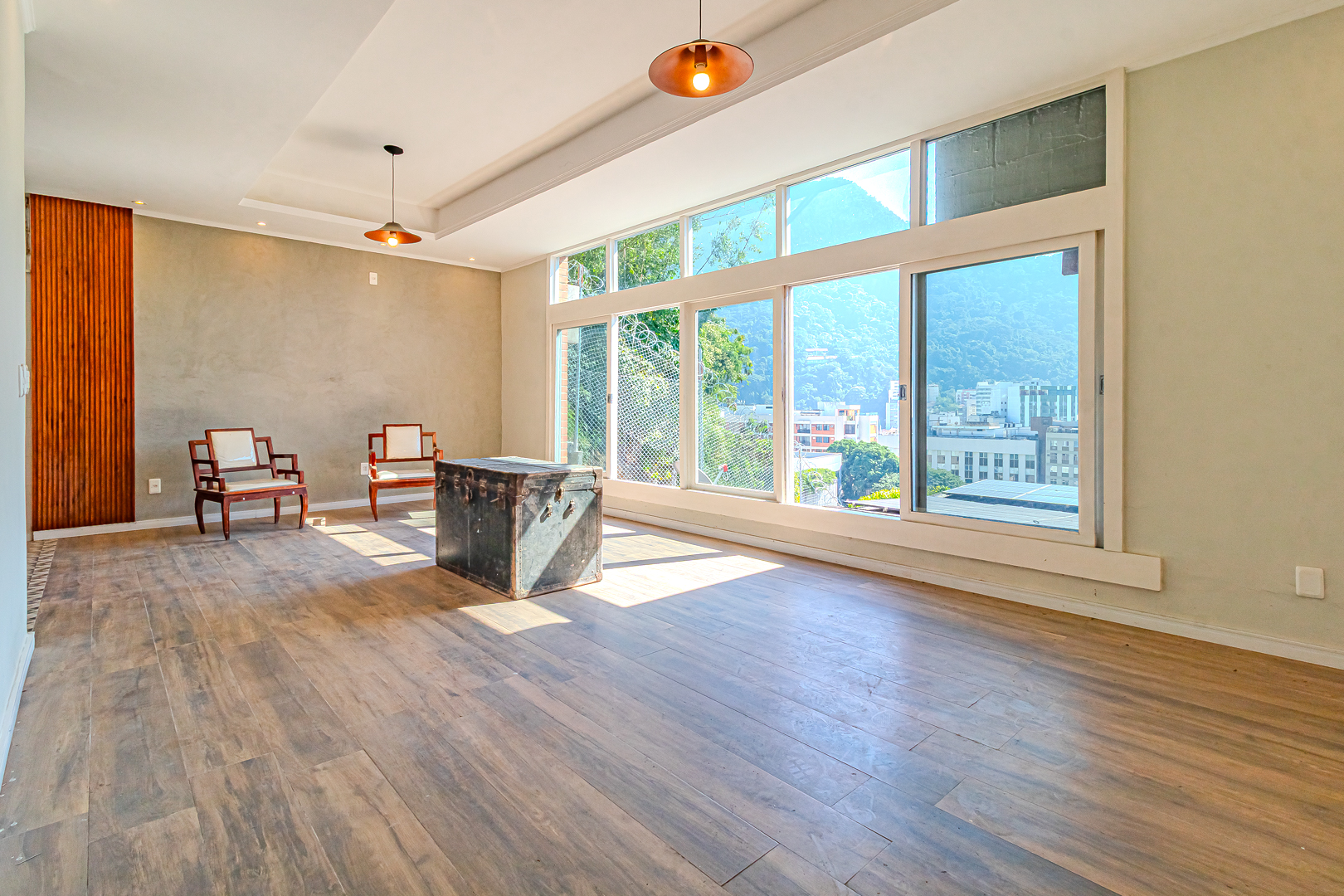 A sala tem um janelão que a corta de fora a fora, com vista eterna para o Cristo Redentor. Do quintal eu nem preciso falar, né? Praticamente todo mundo quer um desses para chamar de seu.