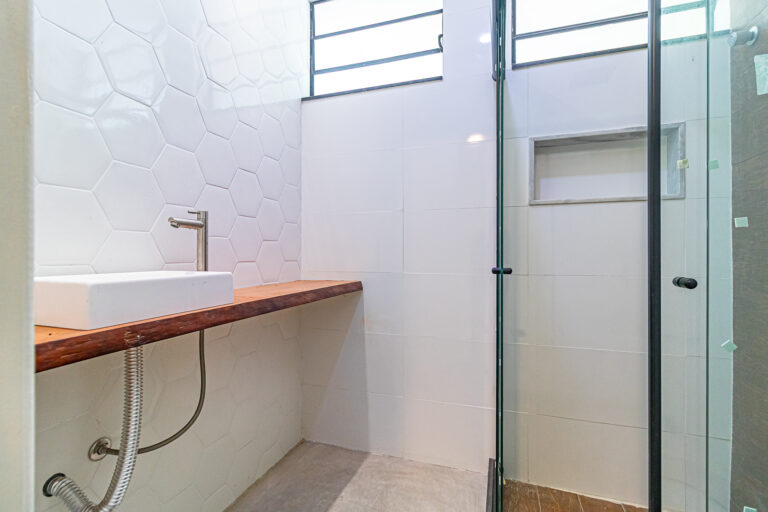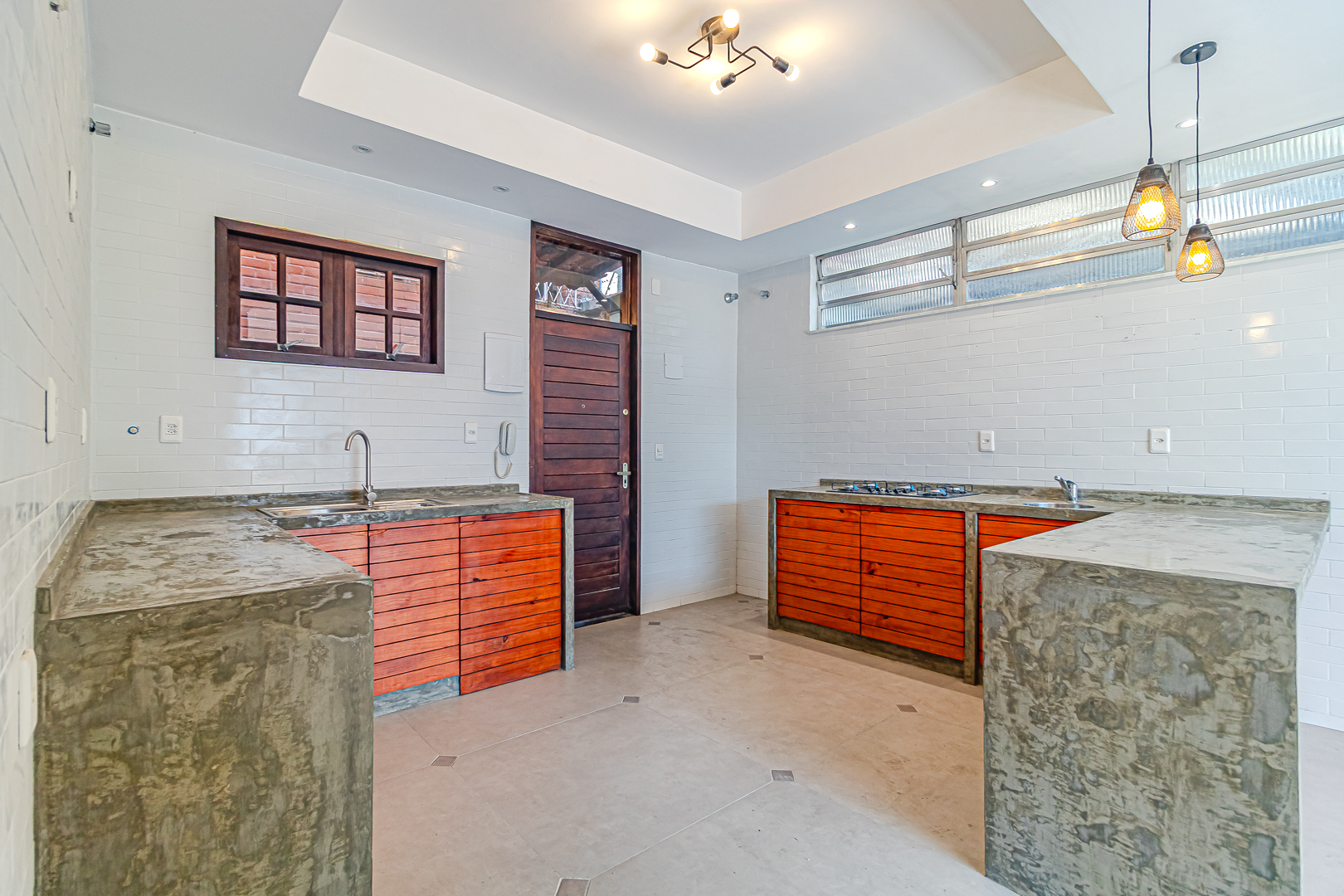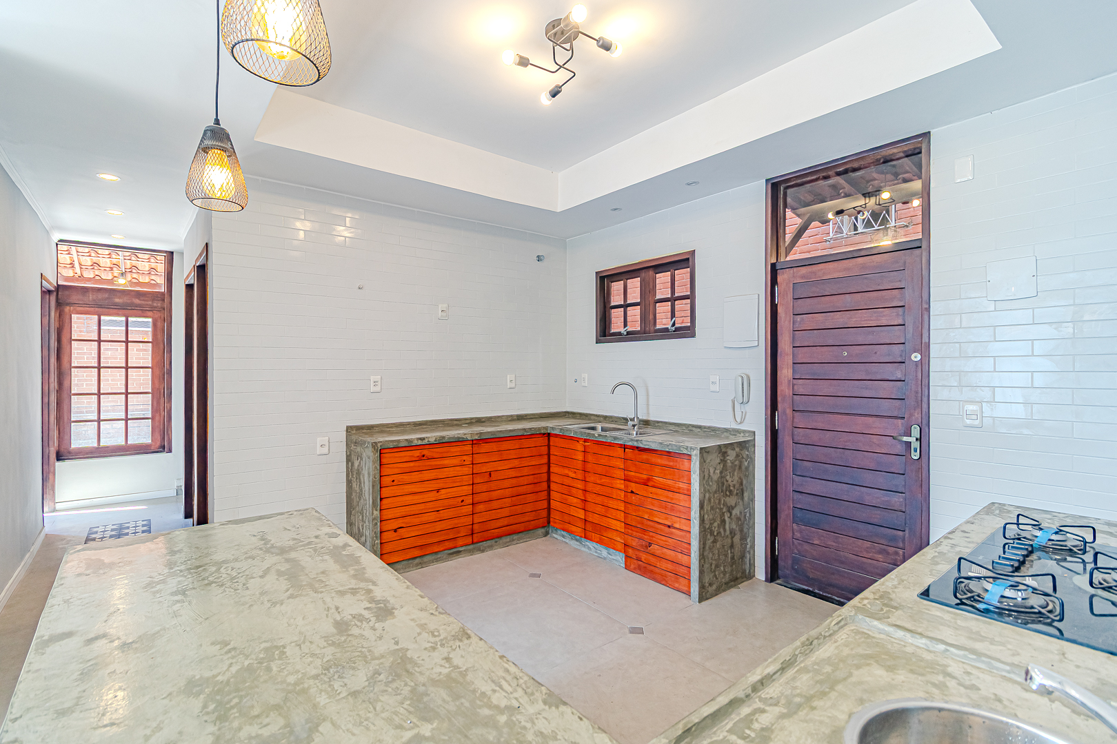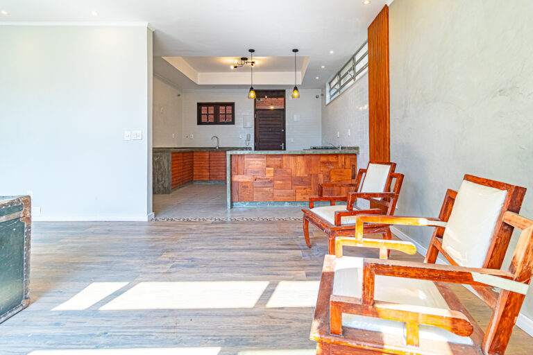 A cozinha é aberta para a sala, tornando o ambiente mais amplo e ideal para confraternizações.