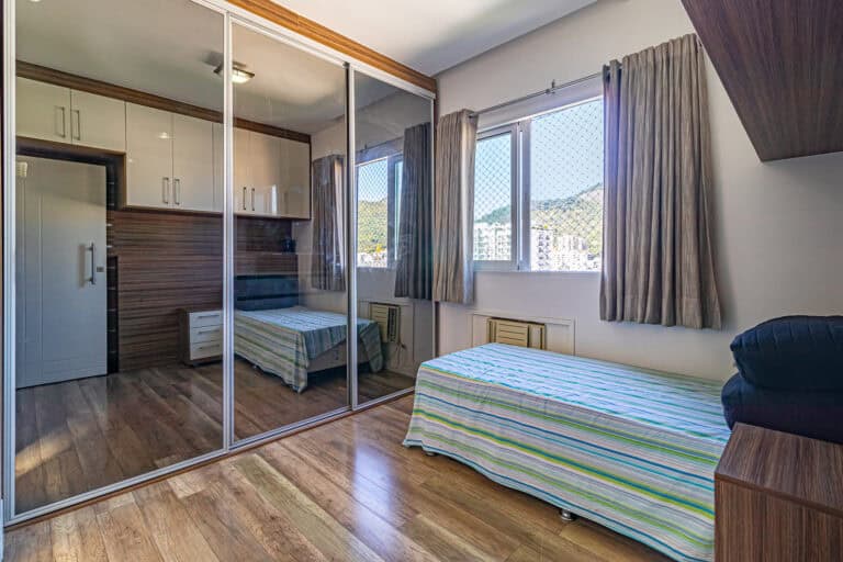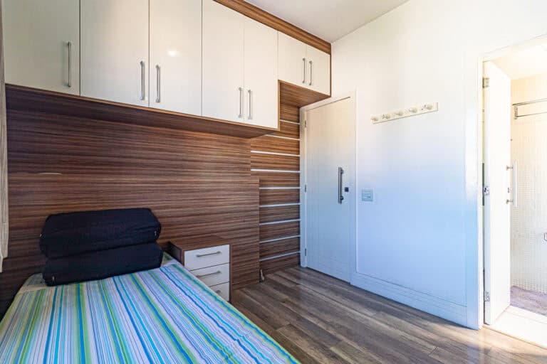 A área íntima é composta por 2 quartos, sendo 1 suíte e mais 1 banheiro social.