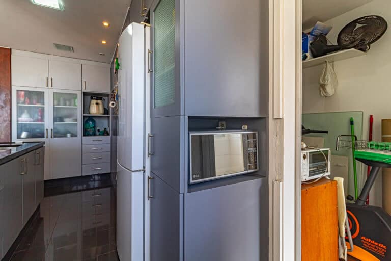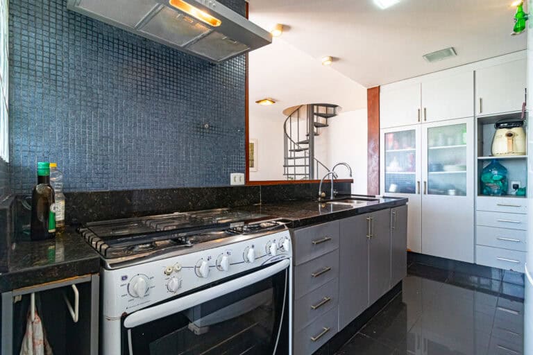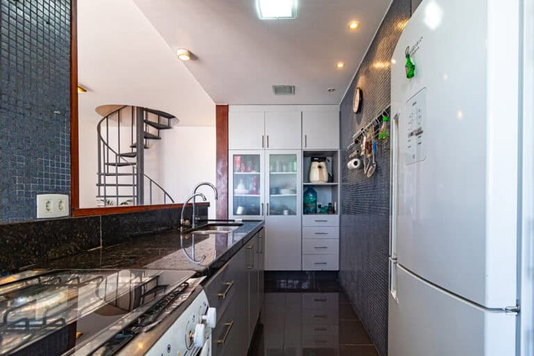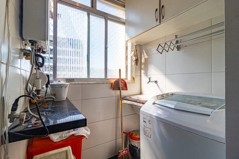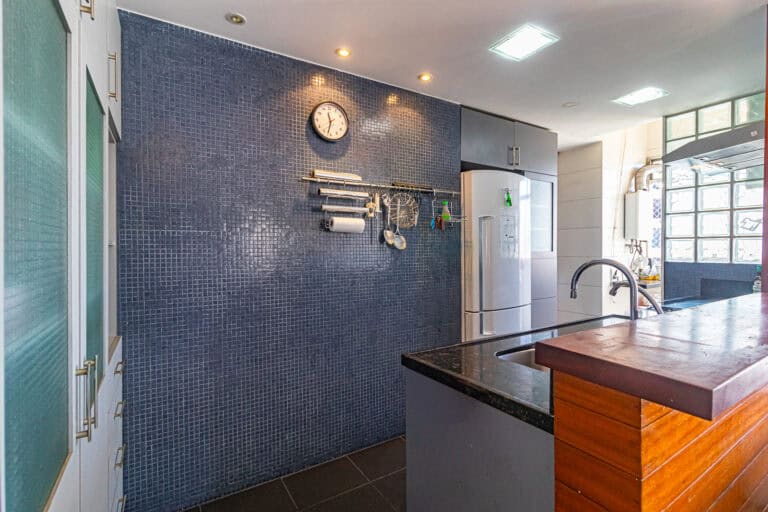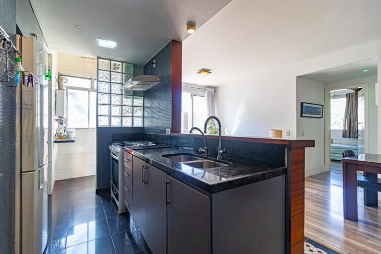 A cozinha americana trouxe maior amplidão ao apê. Conta ainda com área de serviço, dependência e WC.