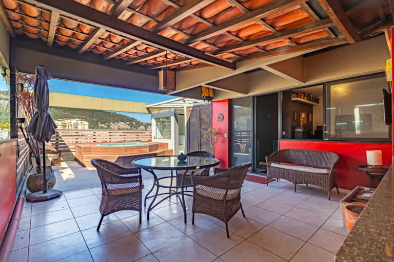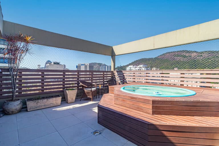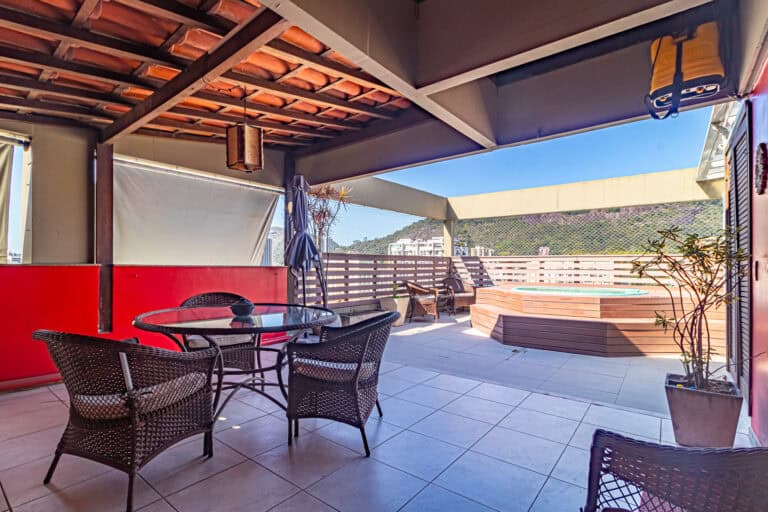 Essa cobertura é para aquelas pessoas que valorizam uma área externa ampla com piscina, sauna, churrasqueira e vista livre.