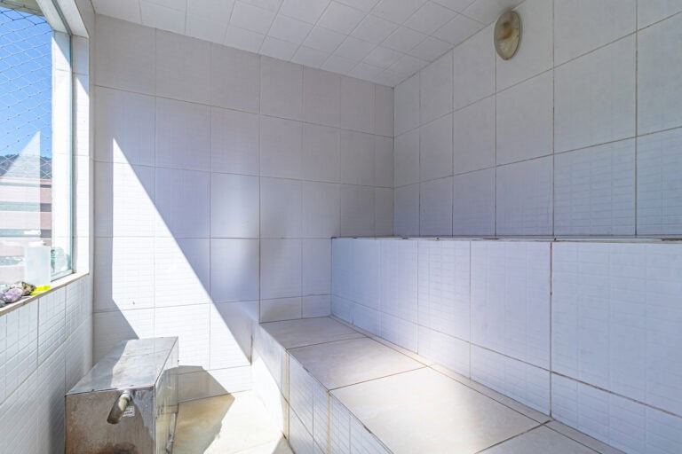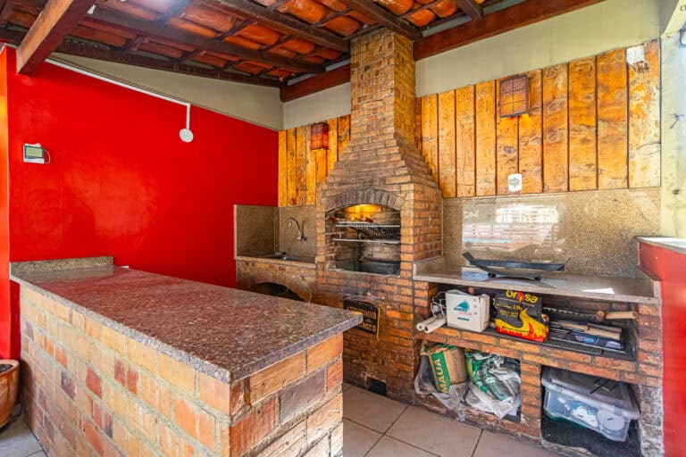 Todo o 2º piso é voltado para o social. Além da piscina, sauna e churrasqueira, este pavimento conta com um chuveirão, escritório/sala de TV e lavabo.