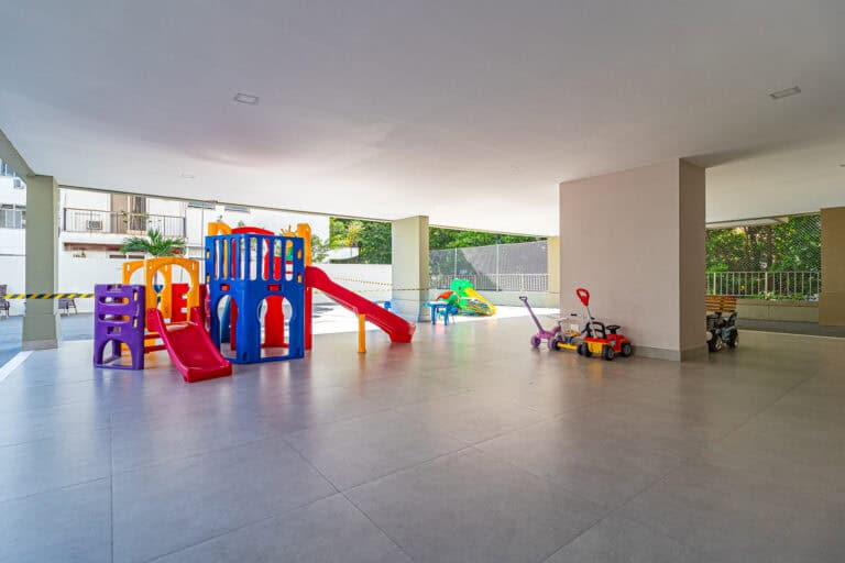 O prédio tem playground, salão de festas e muito espaço para brincar.