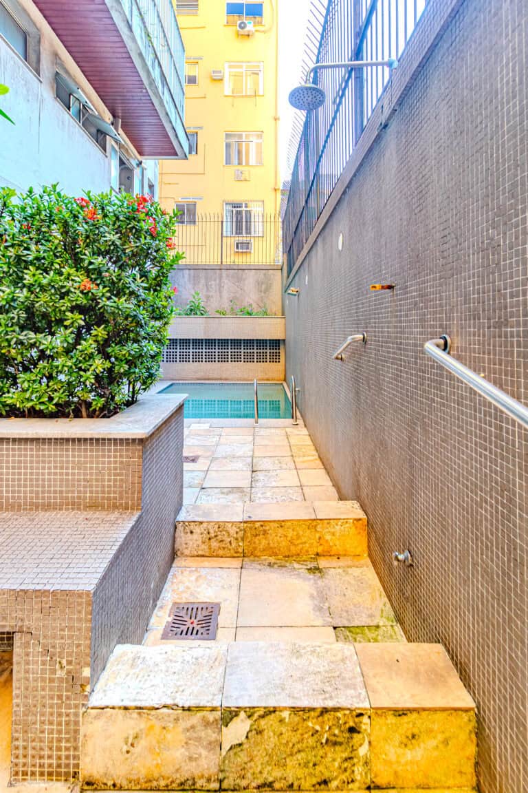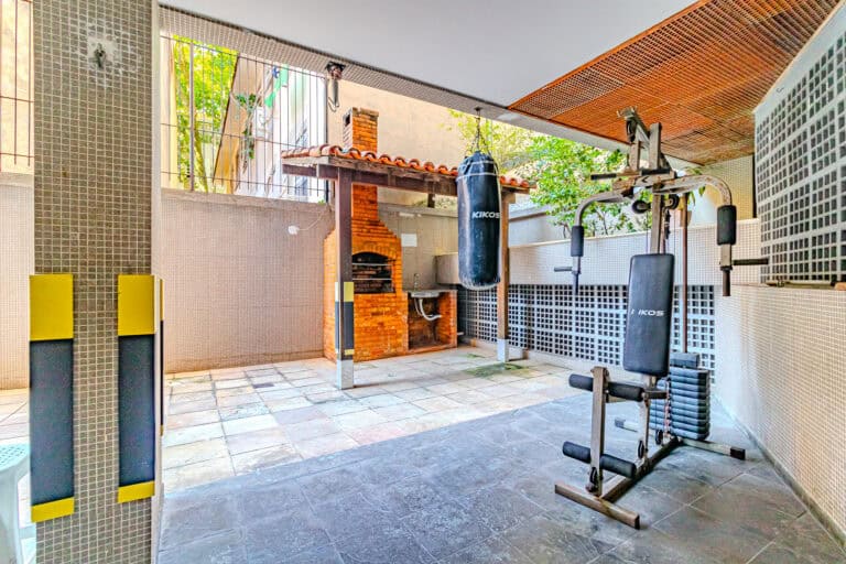 O prédio também tem infraestrutura, com uma pequena piscina, churrasqueira e alguns aparelhos para exercícios.