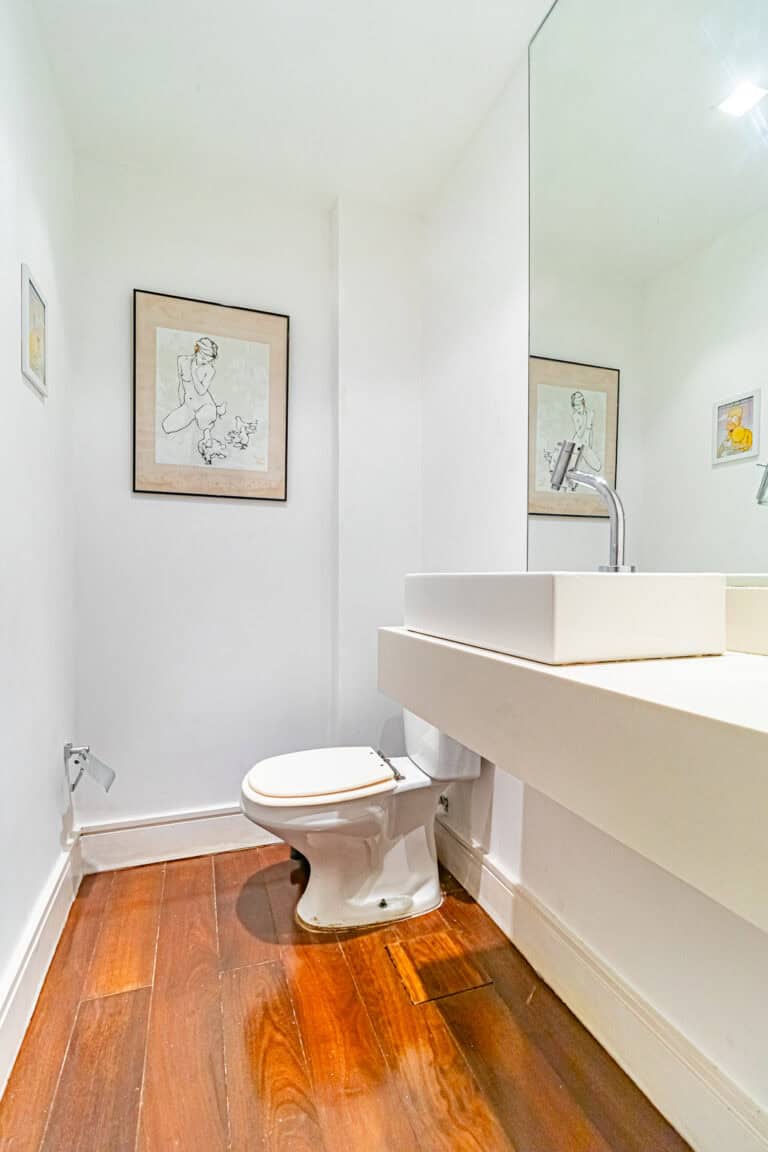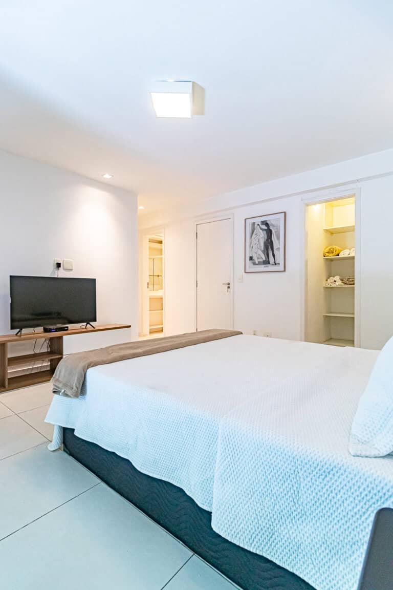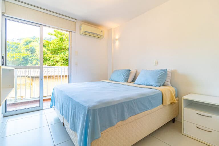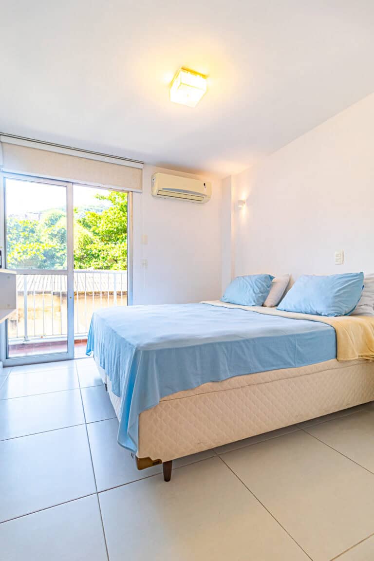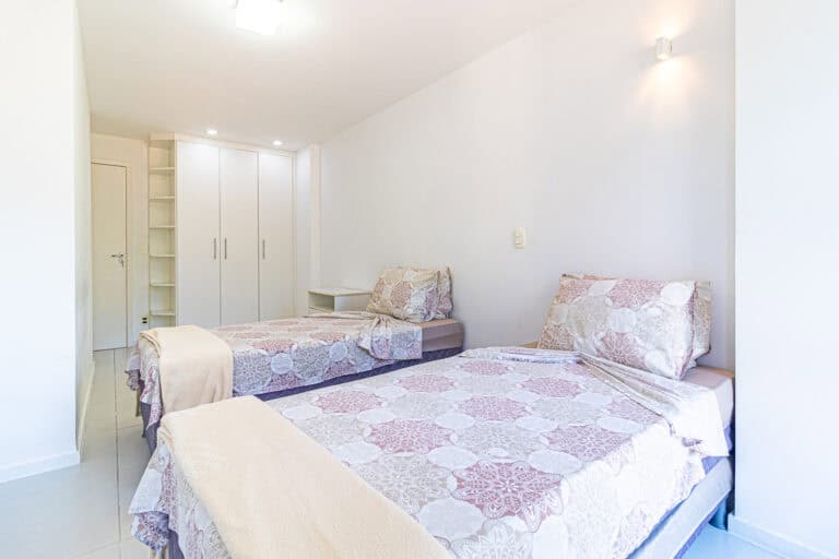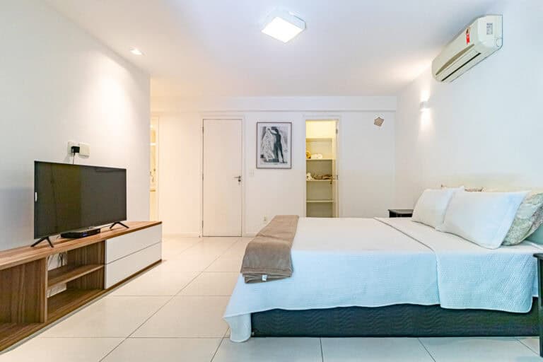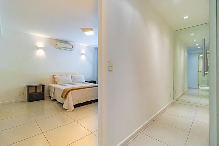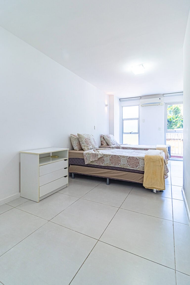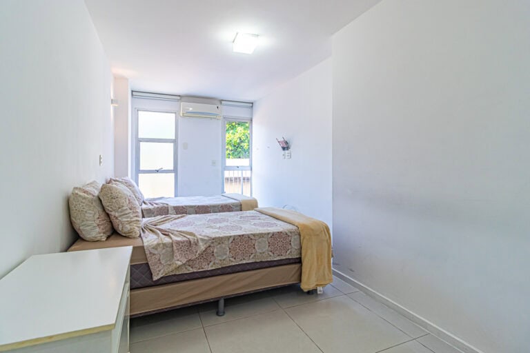 A área íntima é composta por 3 quartos, sendo 1 suíte máster e mais 1 banheiro social. A suíte é enorme, contando ainda com closet e varanda. Os outros quartos também têm um bom tamanho, além de uma sacada. Todos os cômodos contam com aparelhos de ar-condicionado tipo split.