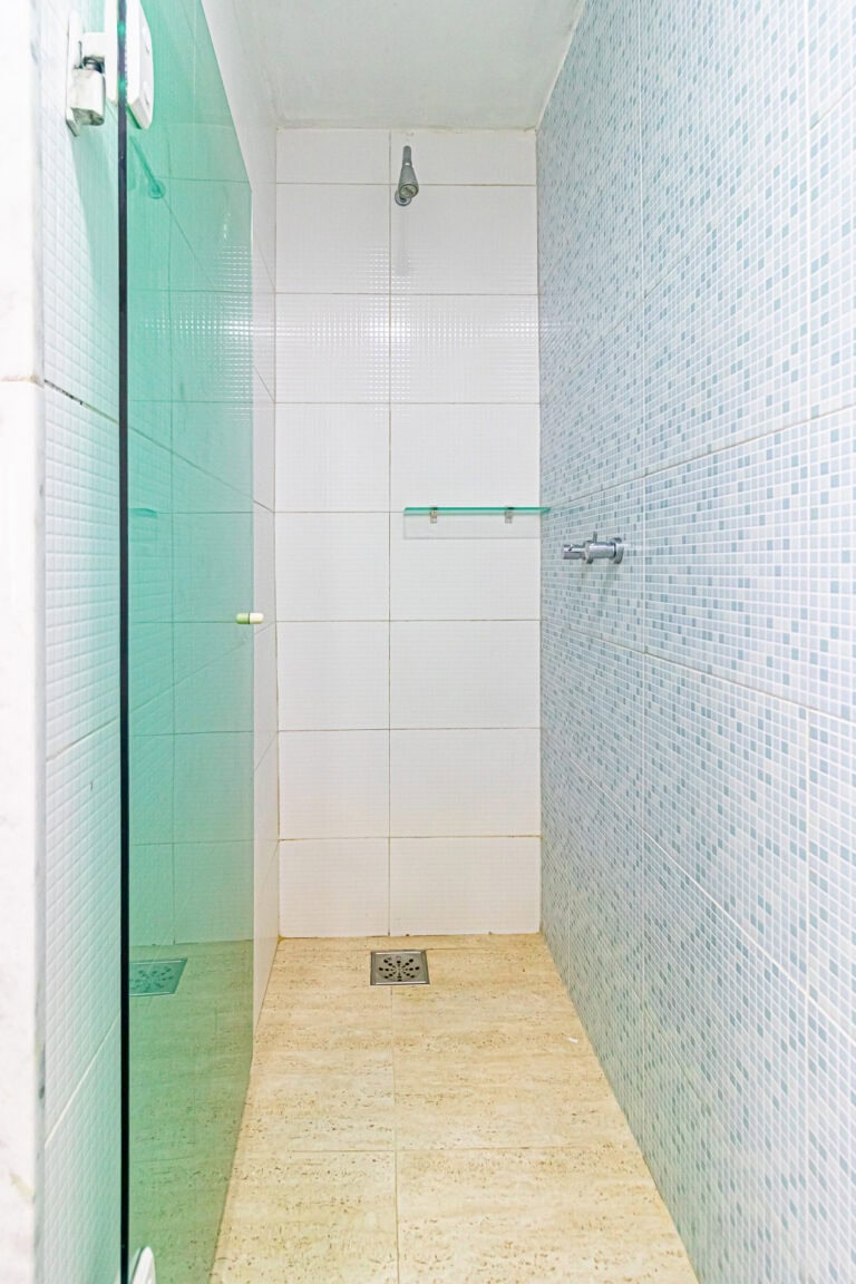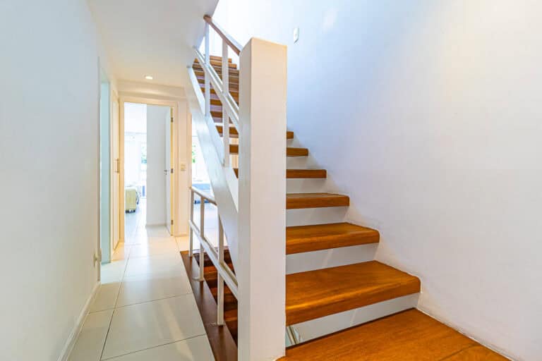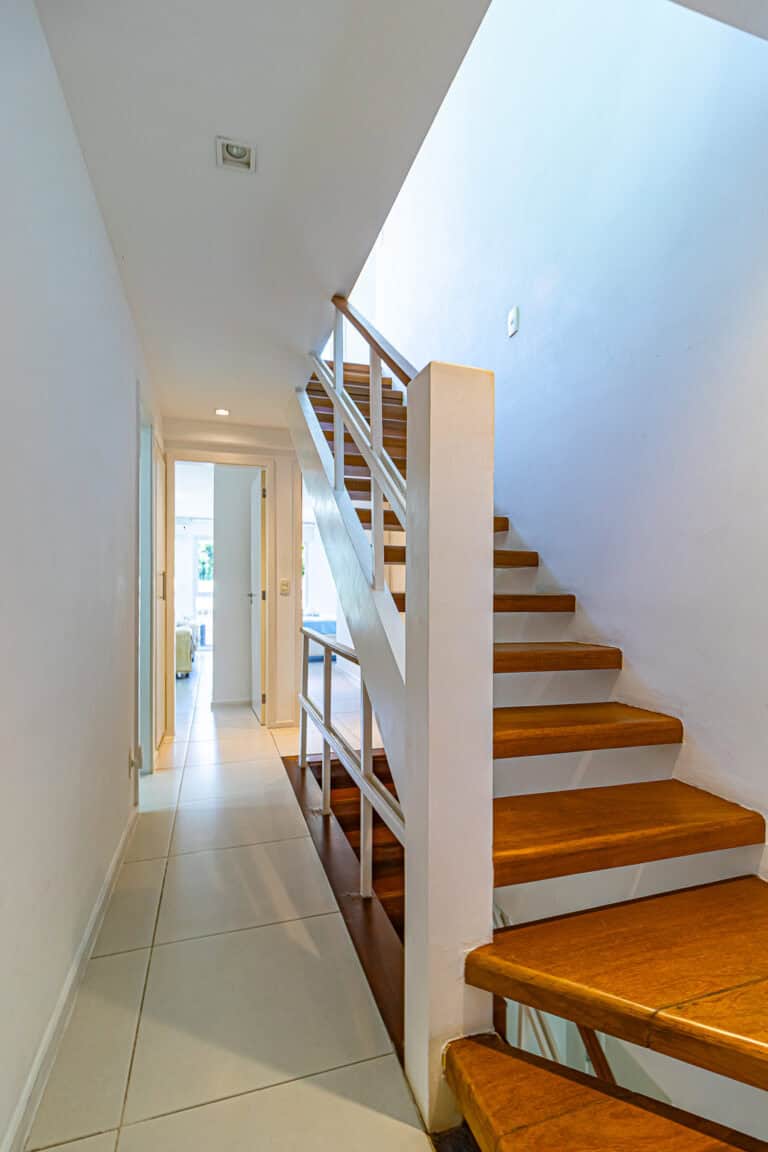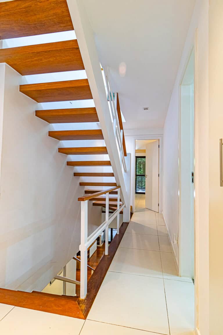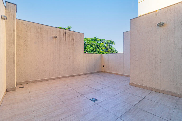 A cobertura é um triplex dividido da seguinte forma – no 1º piso ficam a sala, varanda, lavabo, cozinha, área de serviço e dependência. No 2º piso ficam os 3 quartos e no 3º piso, o terraço.