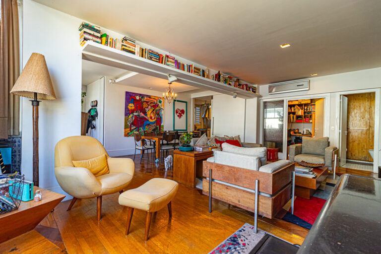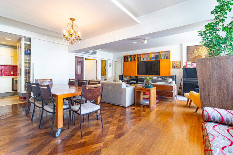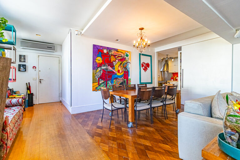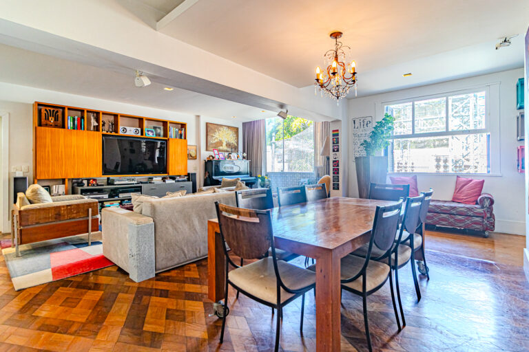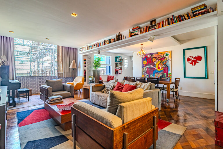 Este imóvel de 142m², fica localizado em um simpático prédio antigo e sem elevador na Rua Major Rubens Vaz.