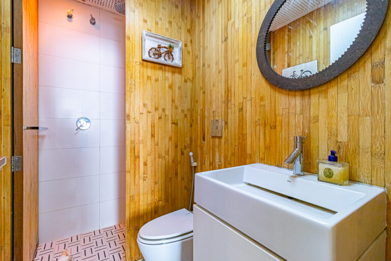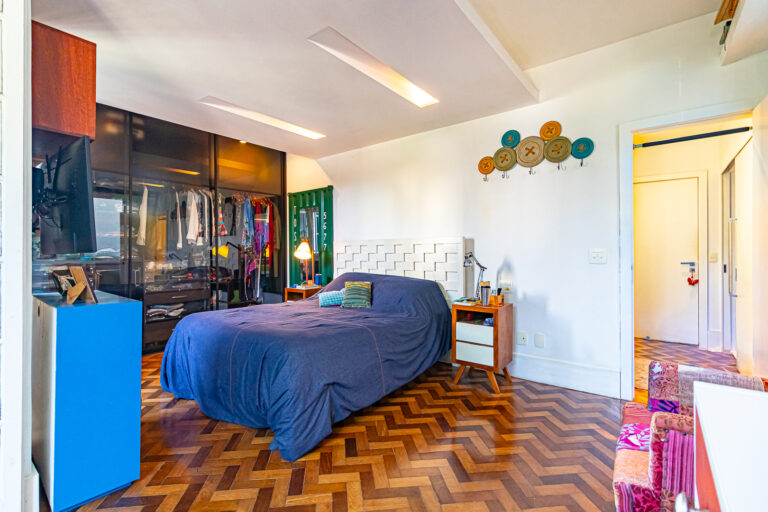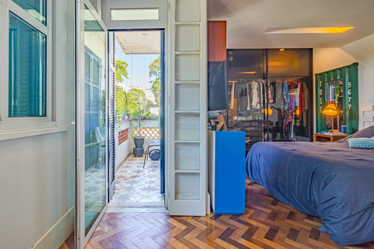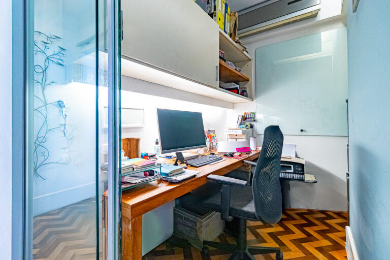 A área íntima é composta por 2 quartos, sendo 1 suíte, e mais 1 escritório. A suíte é maravilhosa, com varanda privativa e um banheiro charmosíssimo com banheira vitoriana. Ambos os quartos e os dois escritórios, contam com marcenaria planejada e aparelhos de ar-condicionado tipo split.