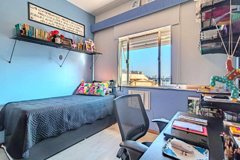 A área íntima é composta por 3 quartos e 2 banheiros sociais. Os 2 quartos menores têm a mesma vista da sala e o quarto maior conta com um ótimo espaço para trabalhar, podendo ser facilmente transformado em uma suíte.