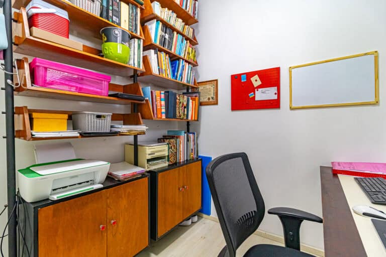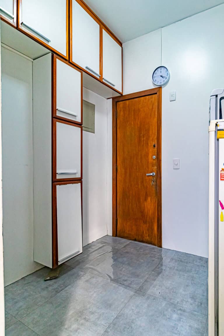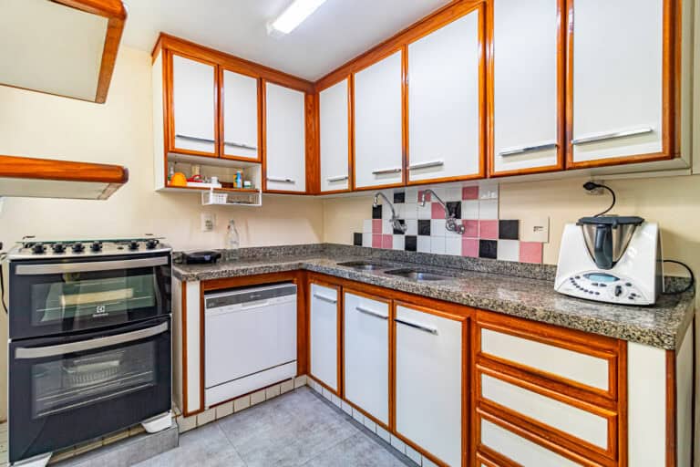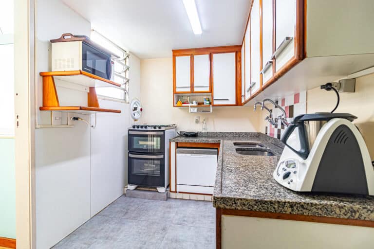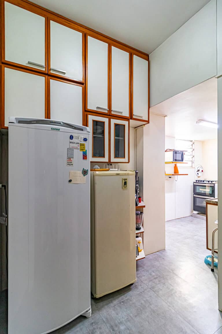 A cozinha é repleta de armários e tem espaço para 2 geladeiras. Conta ainda com uma dependência, utilizada como escritório e um WC de apoio.