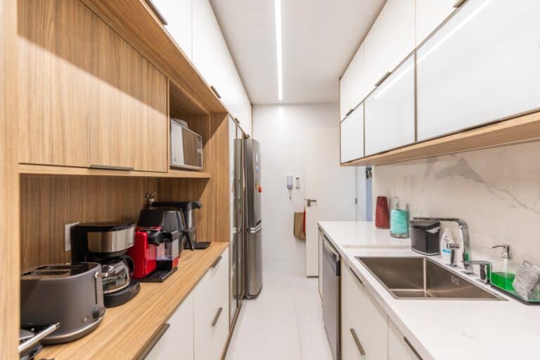 A cozinha é compacta, mas muito bem equipada e docorada e ainda conta com área de serviço, dependência e WC.