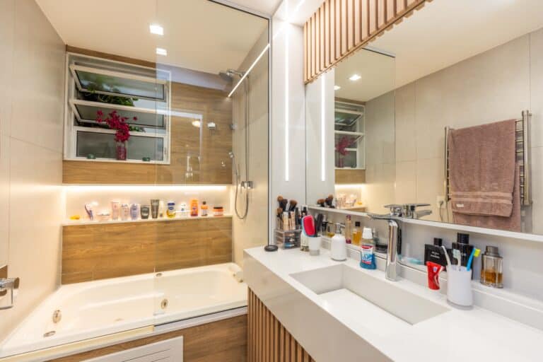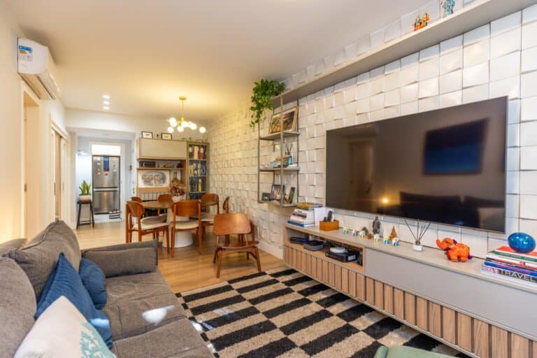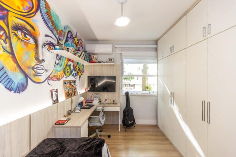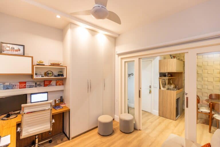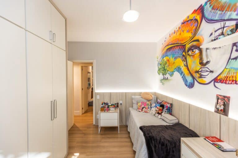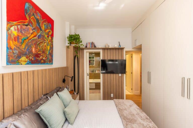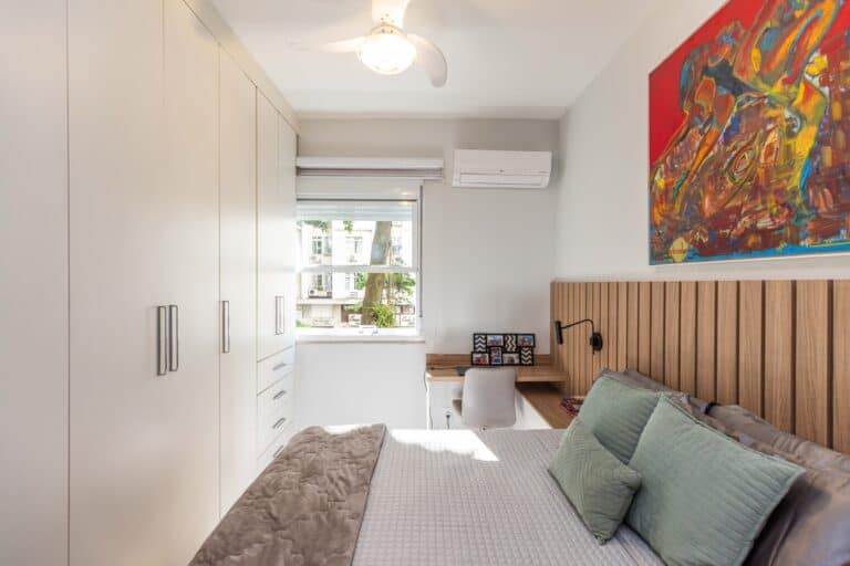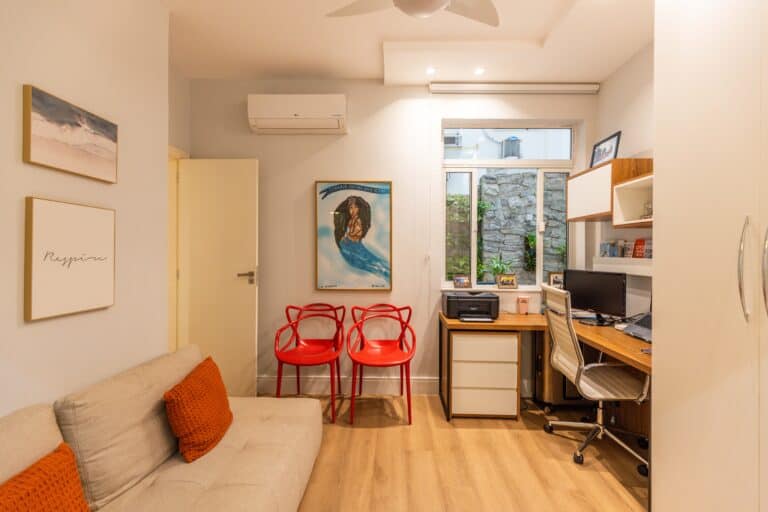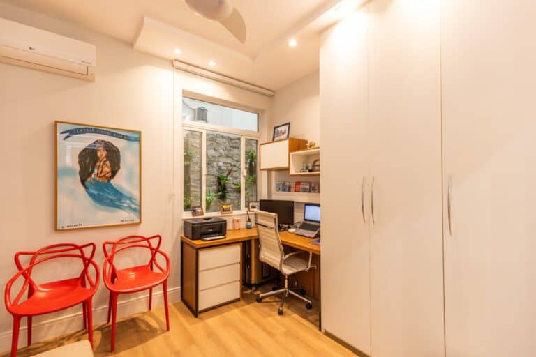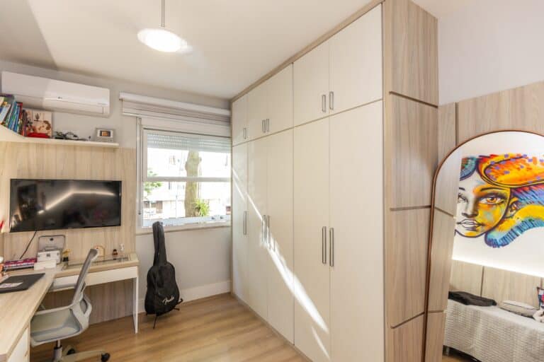 A área íntima é composta por 3 quartos, sendo 1 suíte e mais 1 banheiro social. Todos os quartos contam com armários planejados e aparelhos de ar-condicionado tipo split. Importante ressaltar que os 2 banheiros têm ventilação natural e o da suíte conta com banheira de hidromassagem.