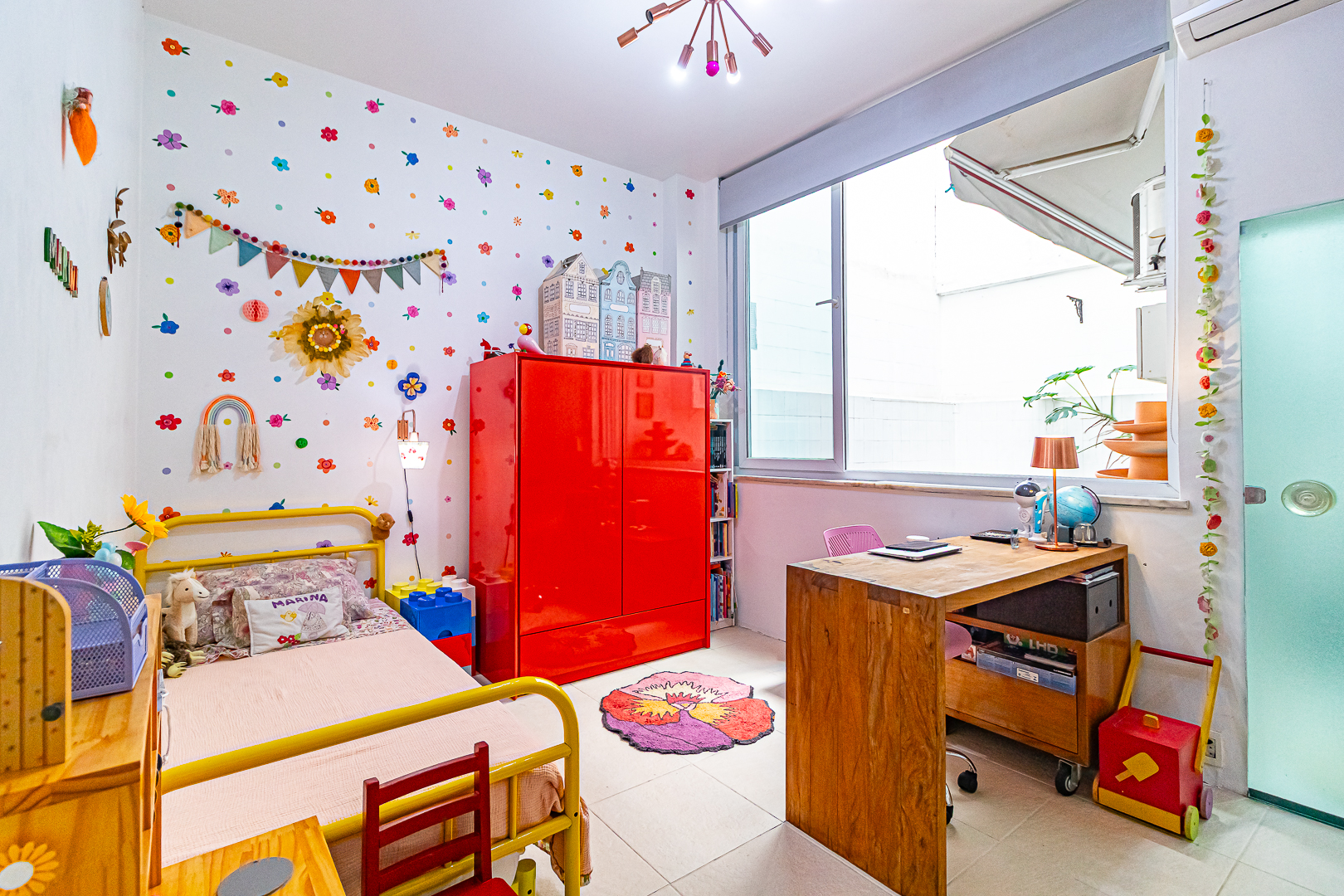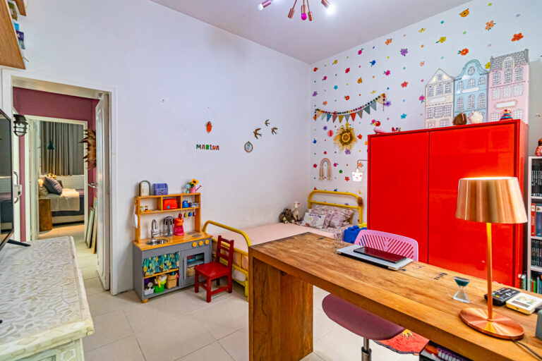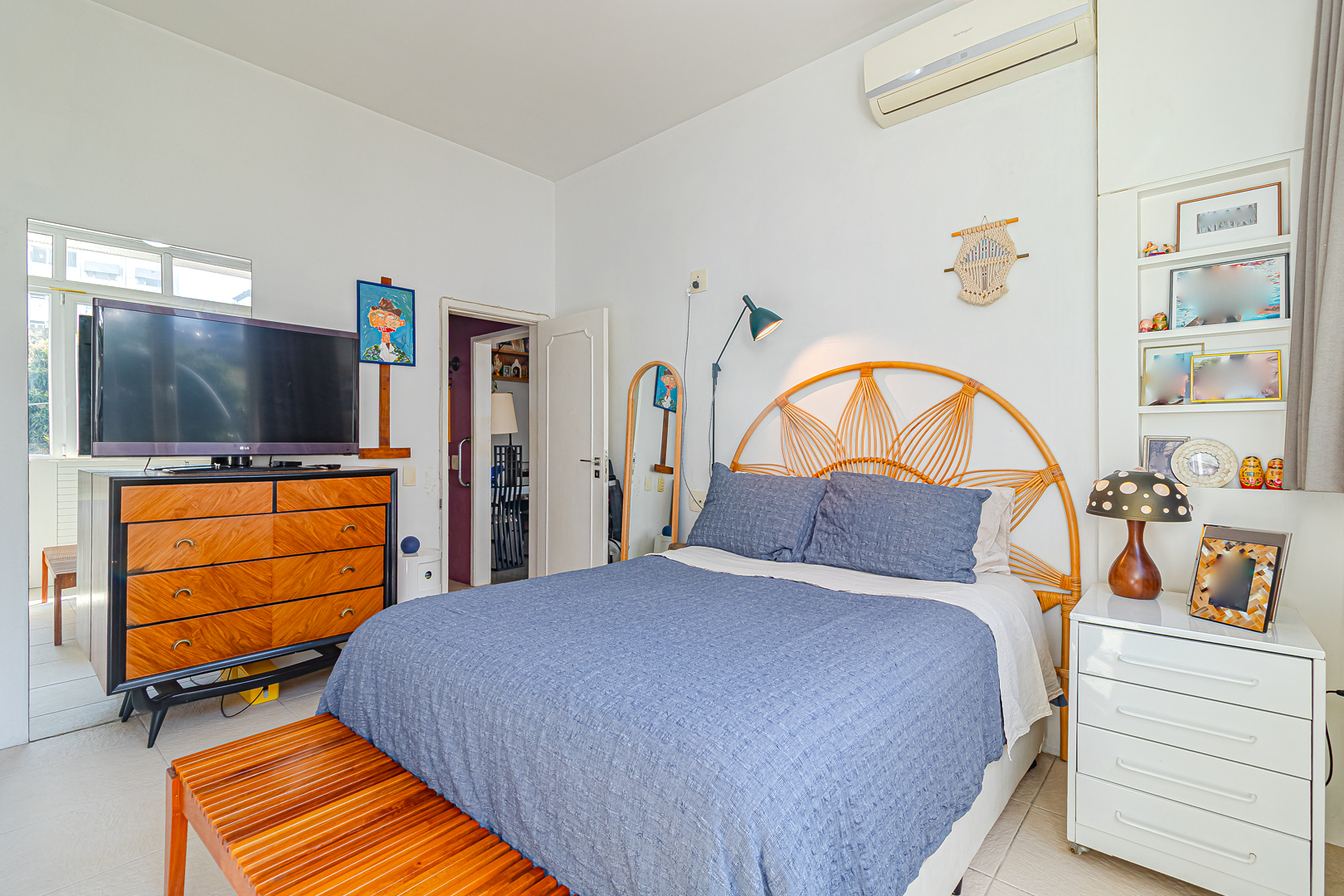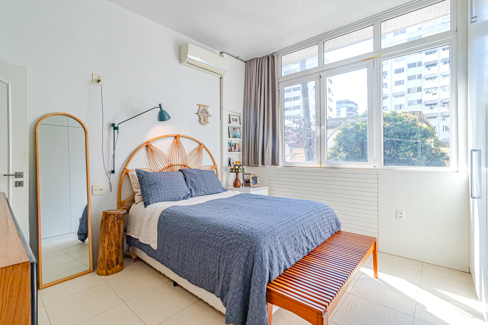 A área íntima conta com 2 quartos, sendo 1 suíte e mais 1 banheiro social. Ambos os quartos contam com aparelhos de ar-condicionado tipo split, têm um bom tamanho e são muito arejados. Vale ressaltar que a suíte não é o quarto do casal.