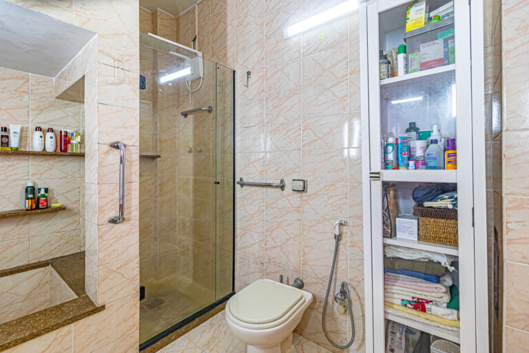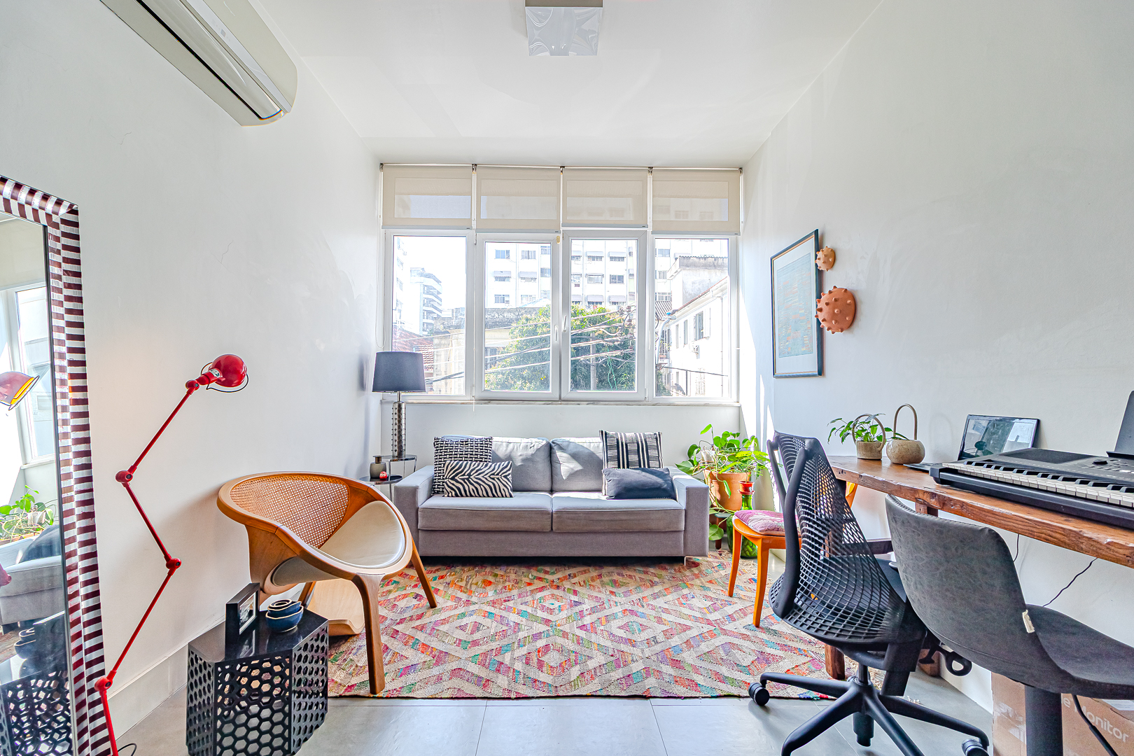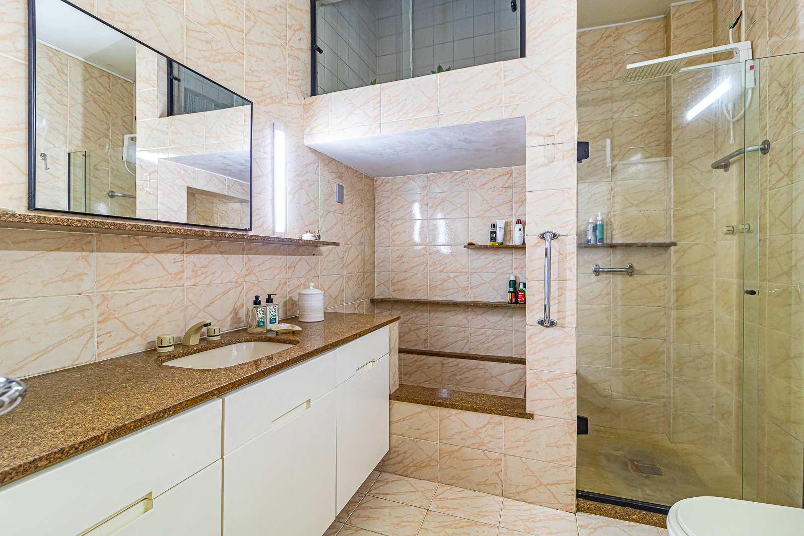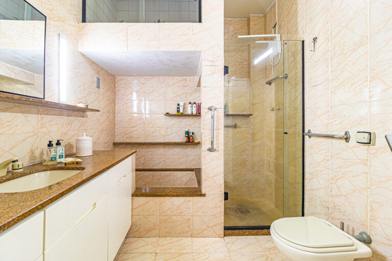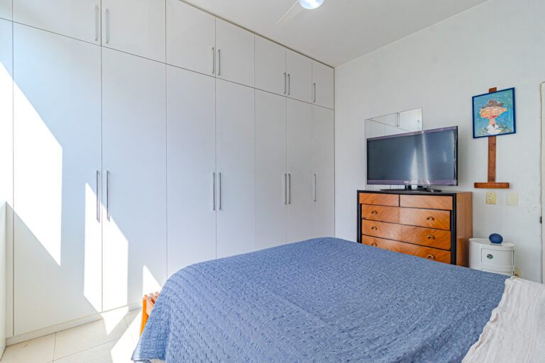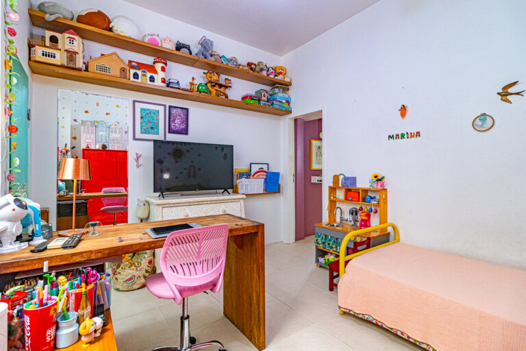 A área íntima conta com 2 quartos, sendo 1 suíte e mais 1 banheiro social. Ambos os quartos contam com aparelhos de ar-condicionado tipo split, têm um bom tamanho e são muito arejados. Vale ressaltar que a suíte não é o quarto do casal.