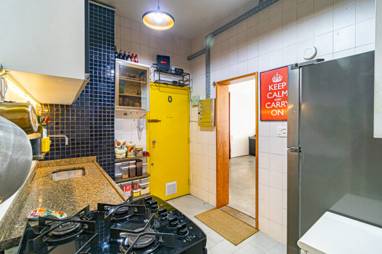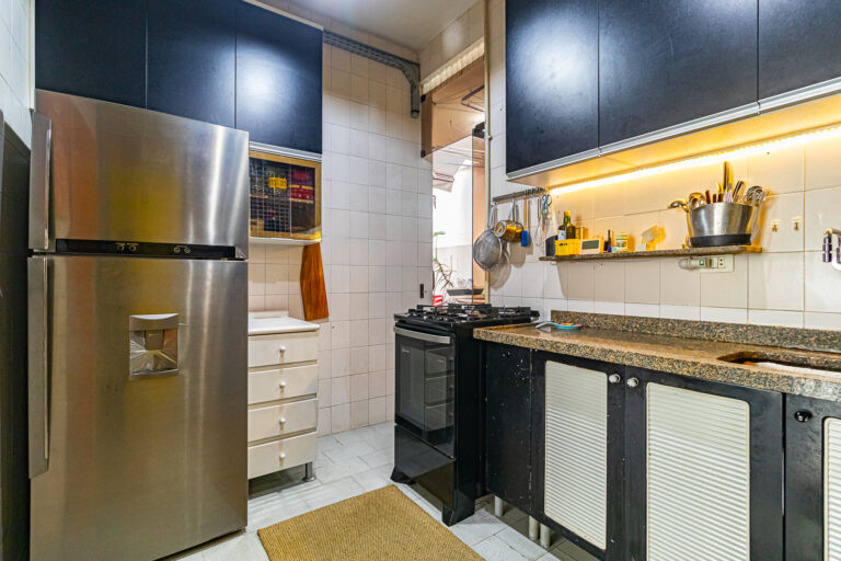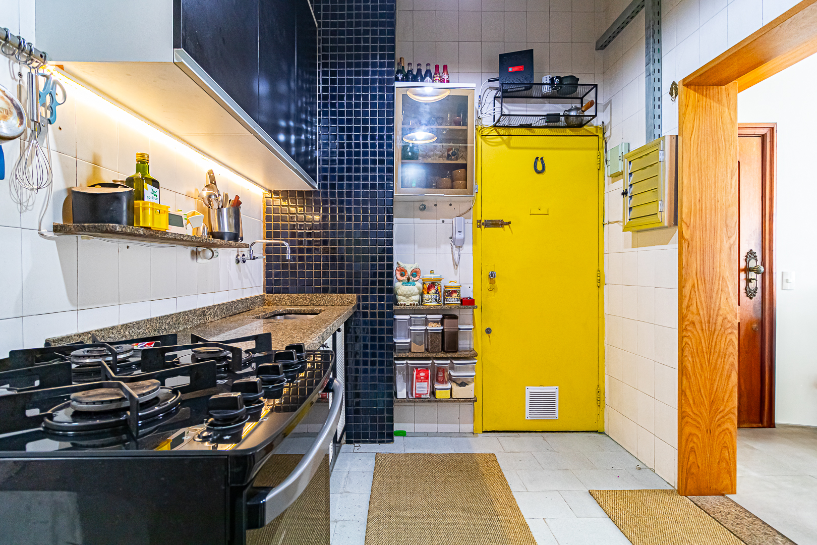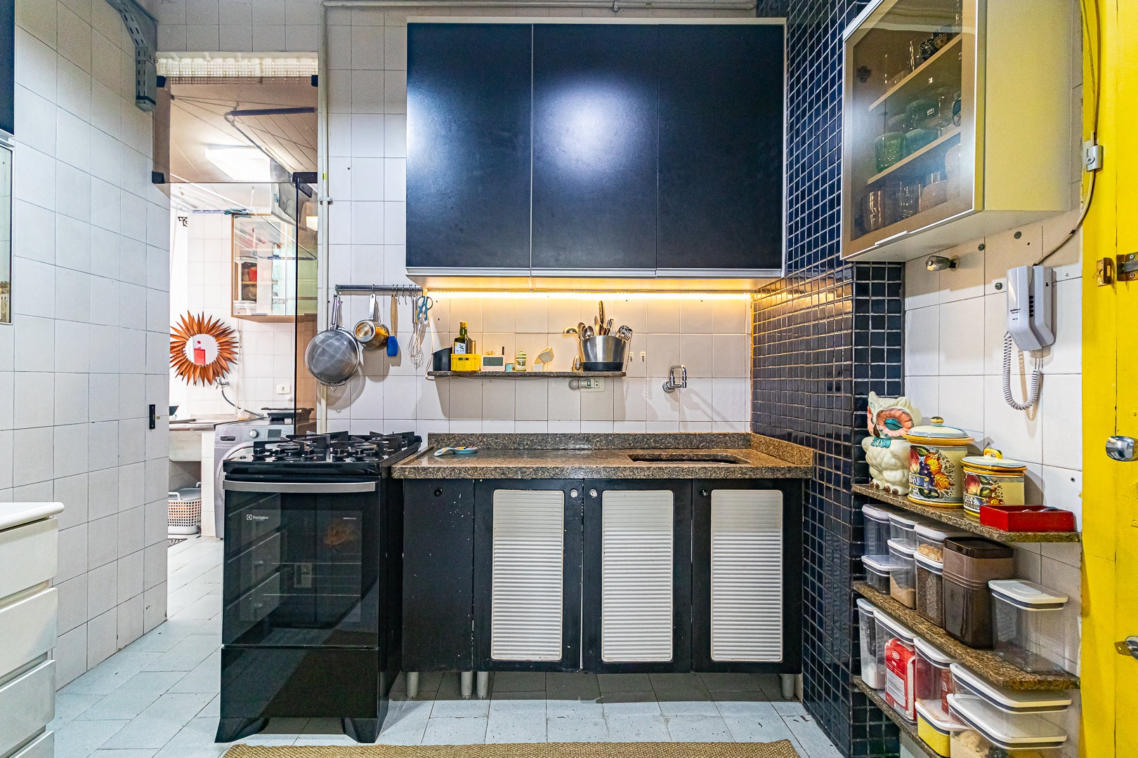 A cozinha é compacta, mas bastante funcional. Conta com armários planejados, área de serviço e dependência.