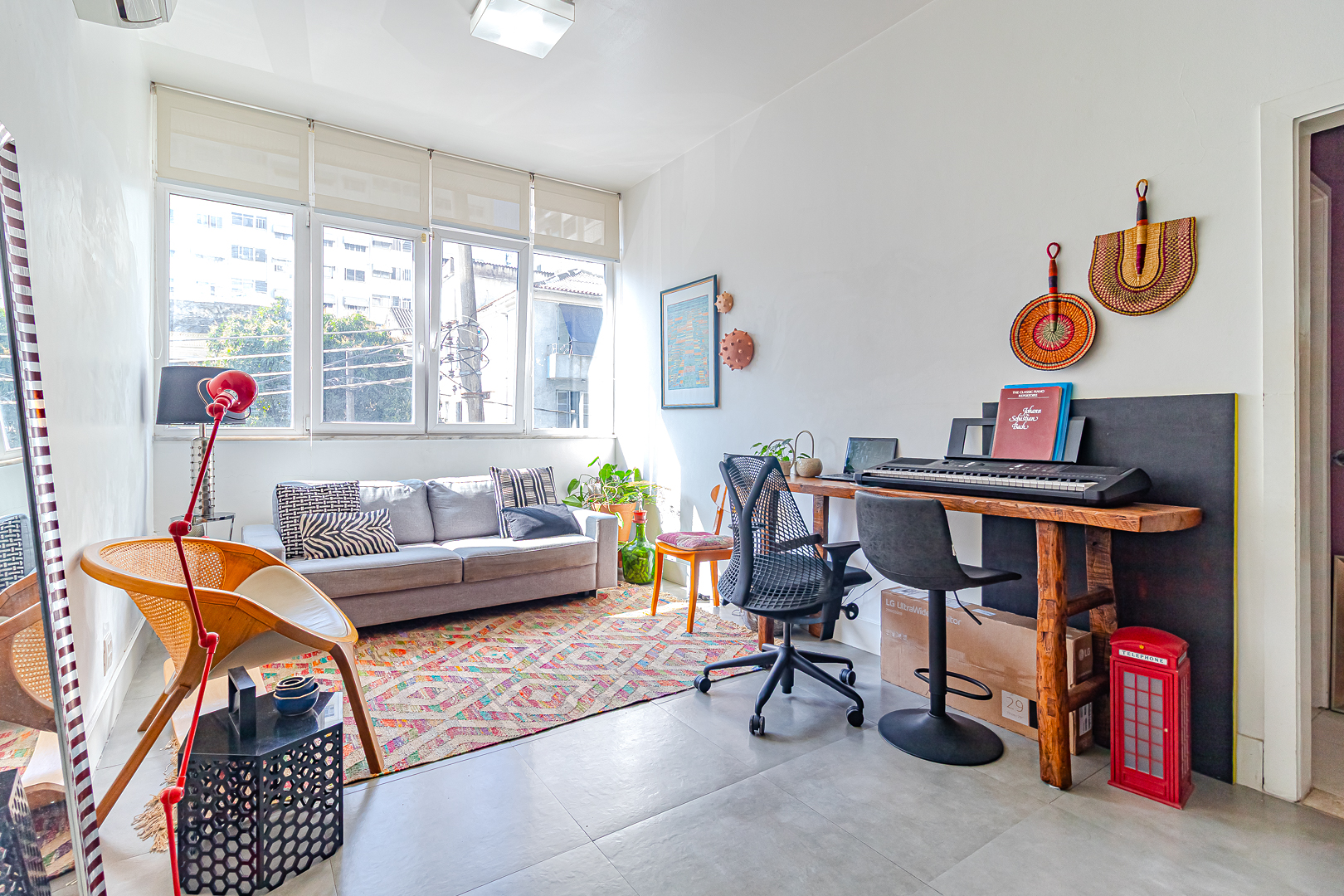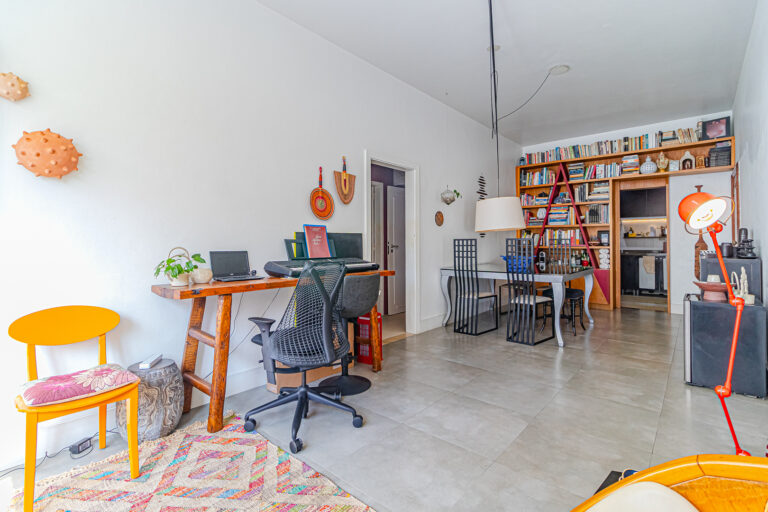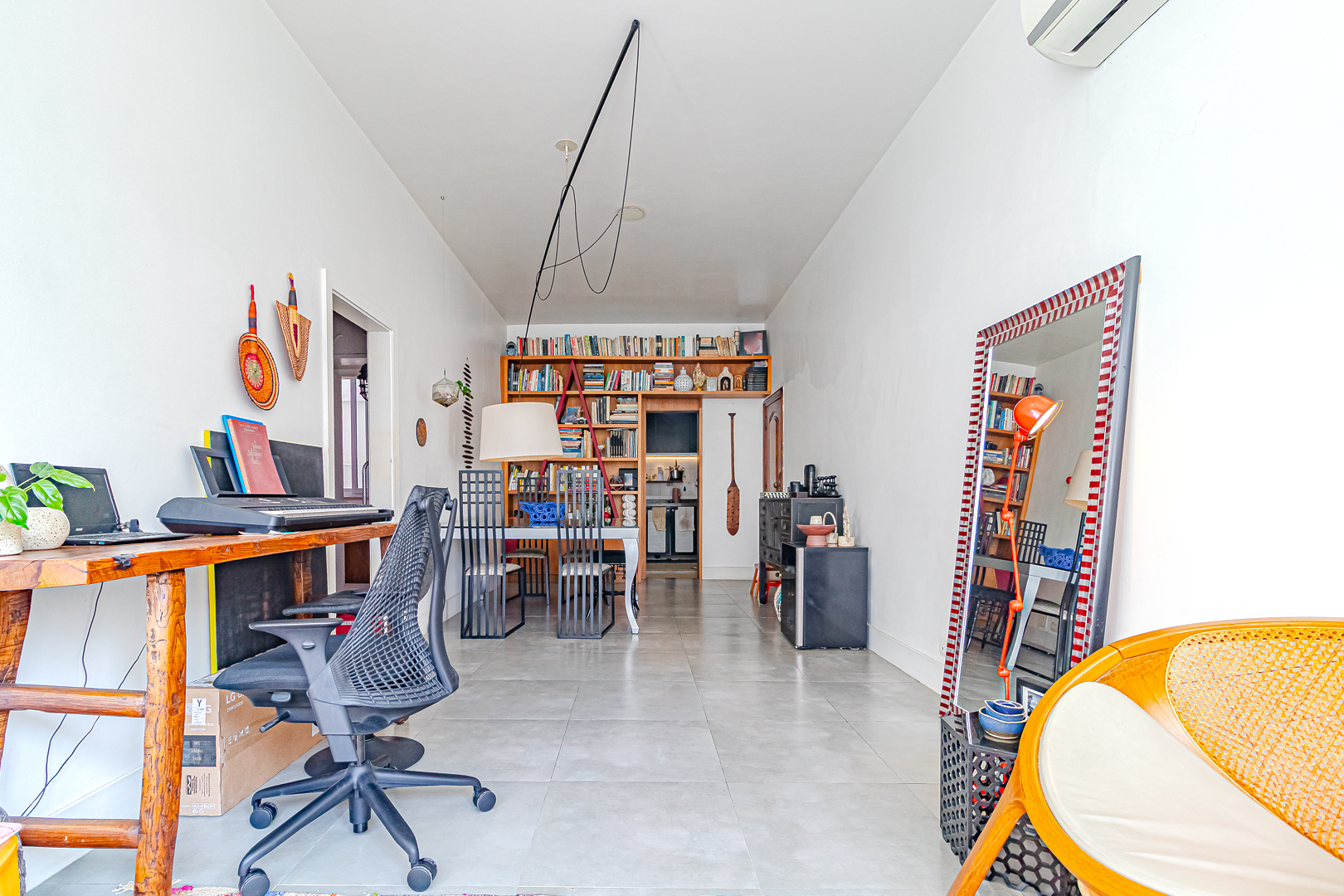 O imóvel tem 82m² no IPTU, mas conta ainda com a área externa de uso exclusivo e um hall privativo. Desta forma tem aproximadamente 100m². Fica localizado na Rua Bambina, a 5 minutos do metrô.