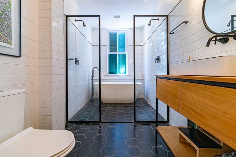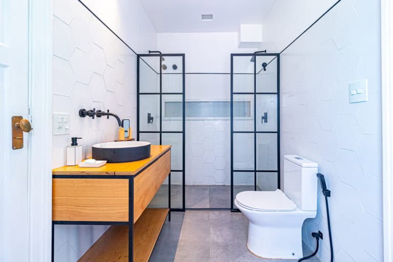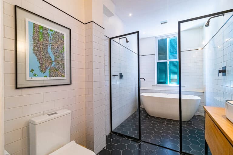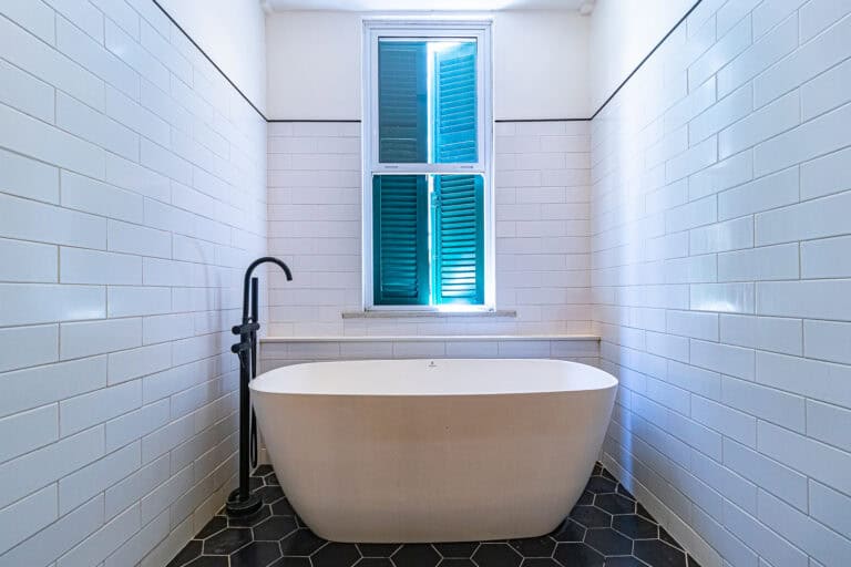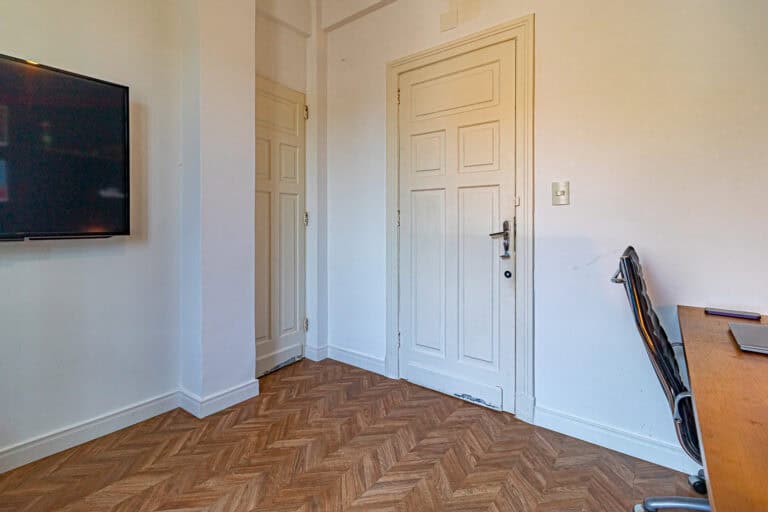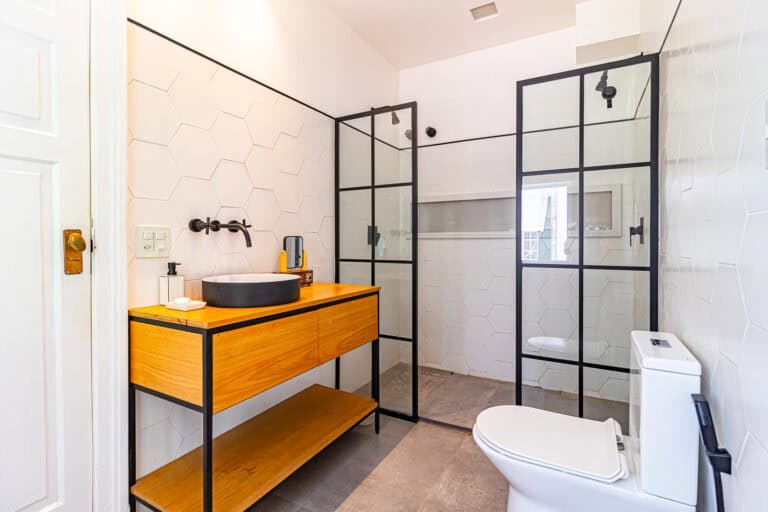 Anexos à sala ficam 2 quartos, utilizados respectivamente como, sala de TV e escritório/quarto de brinquedos, já que a família tem 3 filhos homens e o 4º está a caminho. Os 2 cômodos são atendidos por um incrível banheiro com uma banheira vitoriana.