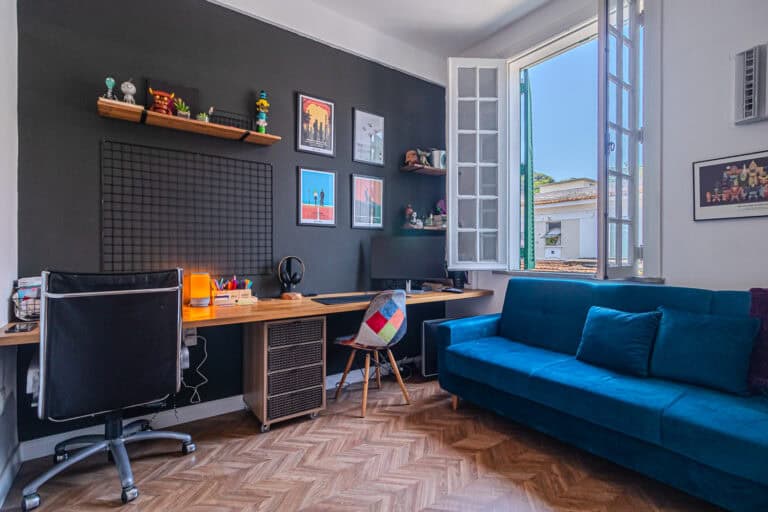 Como todos os apartamentos da Pirees de Almeida, este também conta com um escritório com banheiro no último andar do prédio. Este sim é o home office perfeito!