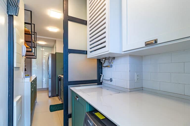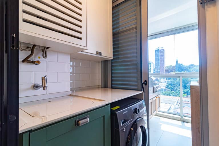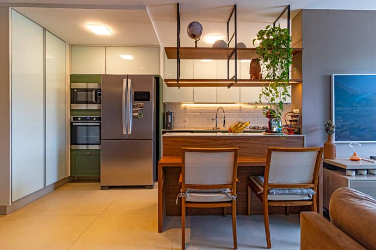 A cozinha aberta é um charme e, junto com a sala e a varanda, tornam o ambiente bastante acolhedor. Conta ainda com uma boa área de serviço.