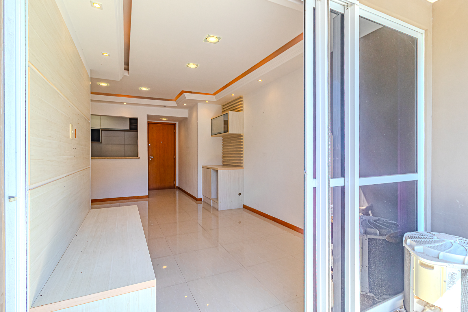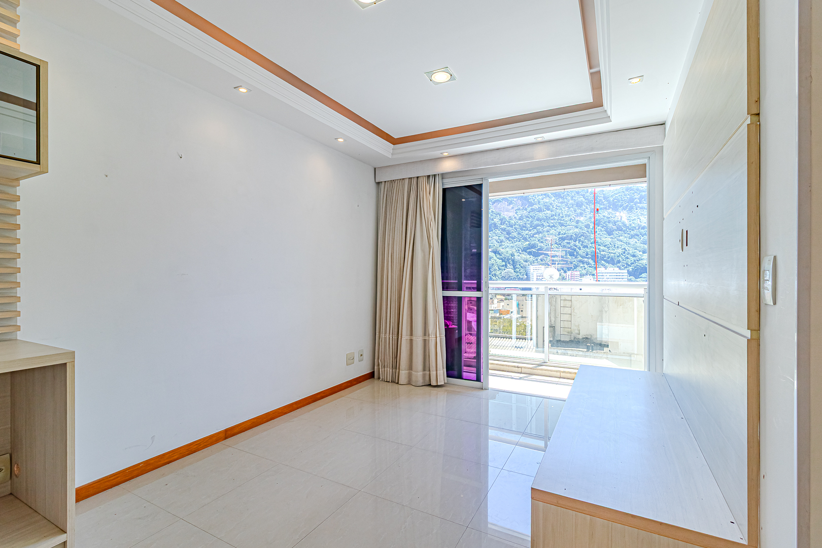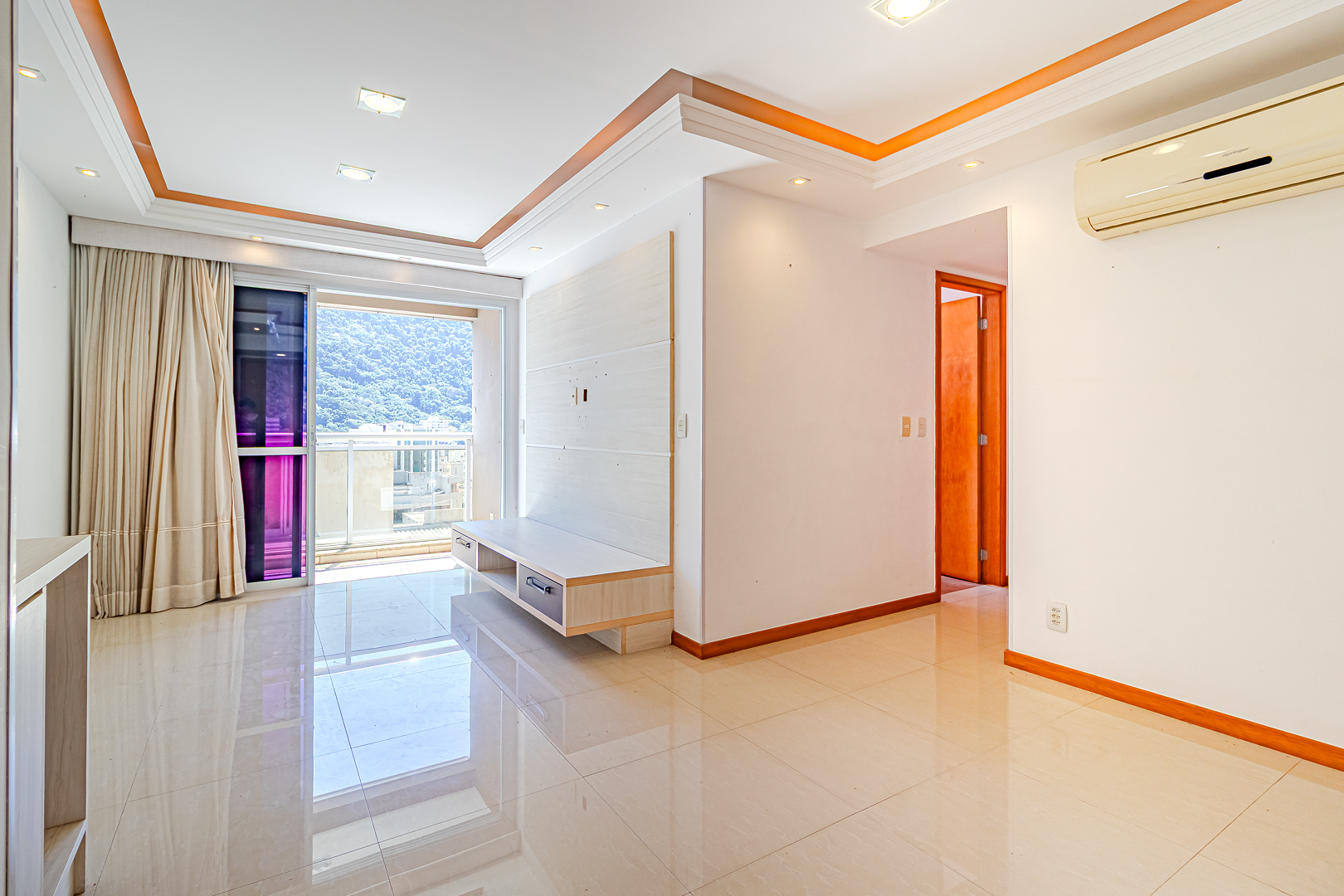 A sala é confortável e muito iluminada. Conta com 2 ambientes e tem uma boa varanda, com uma vista melhor ainda!
