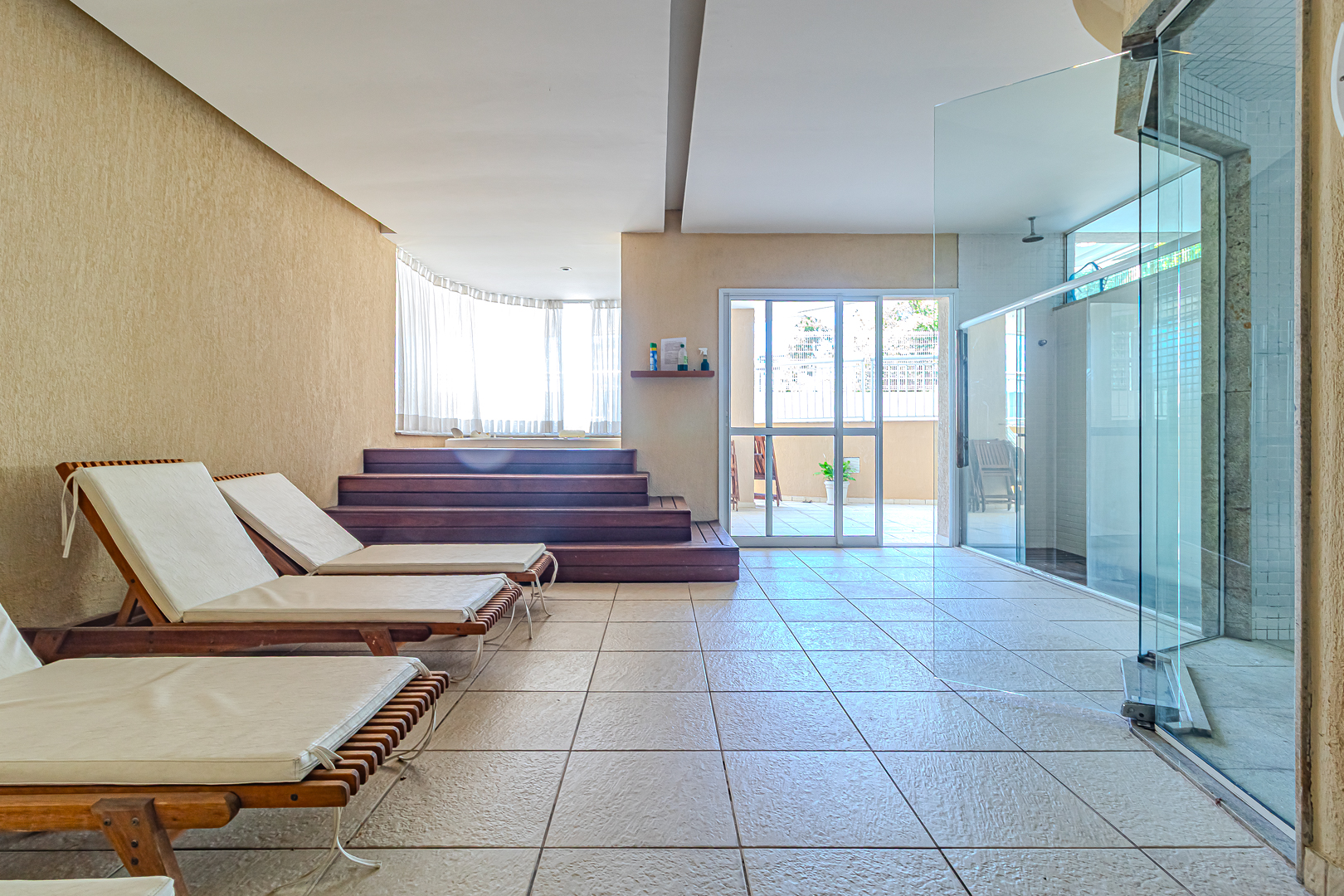 O prédio tem lazer completo com piscina, sauna com hidromassagem, academia, playgroud, salão de festas, lounge para adolescentes e forno de pizza.