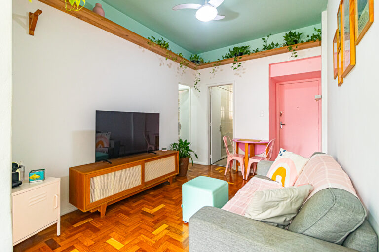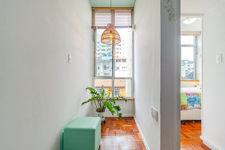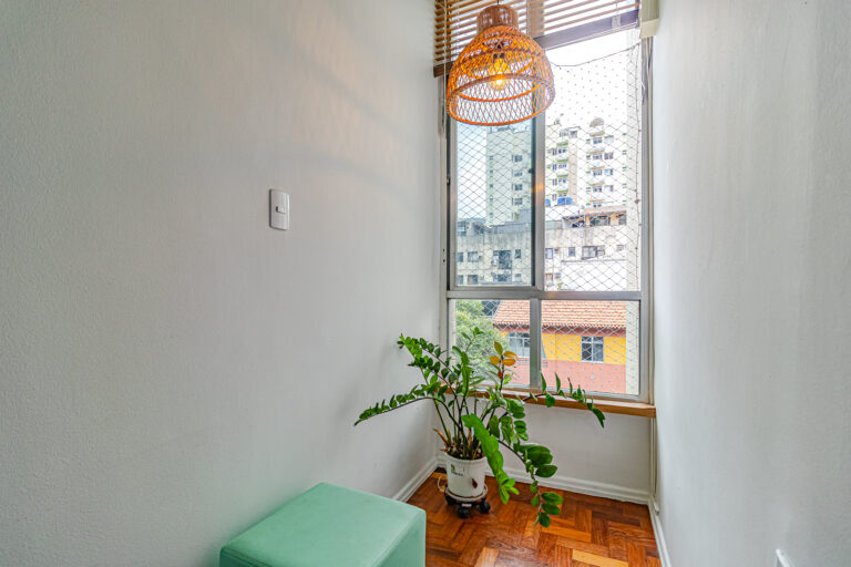 O imóvel de 43m², fica localizado na Rua Álvaro Ramos, quase esquina com a Assis Bueno.