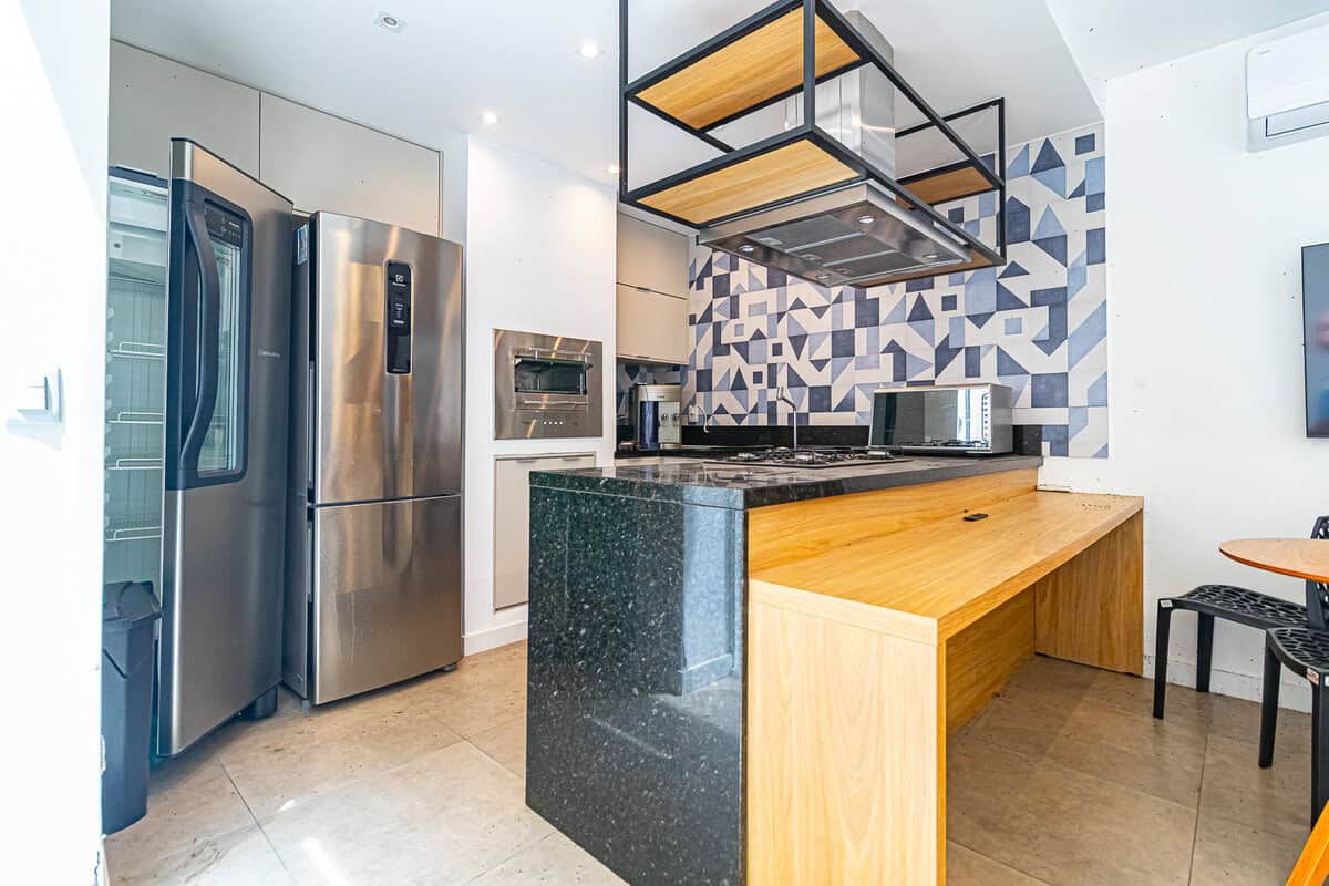O prédio tem uma área gourmet bacana, caso você queira organizar um jantar para a família ou amigos.