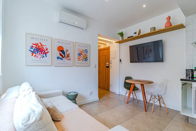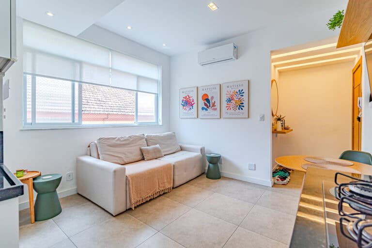 O apartamento está montadinho, sendo perfeito para morar ou para quem quer rentabilizar com aluguel de temporada.