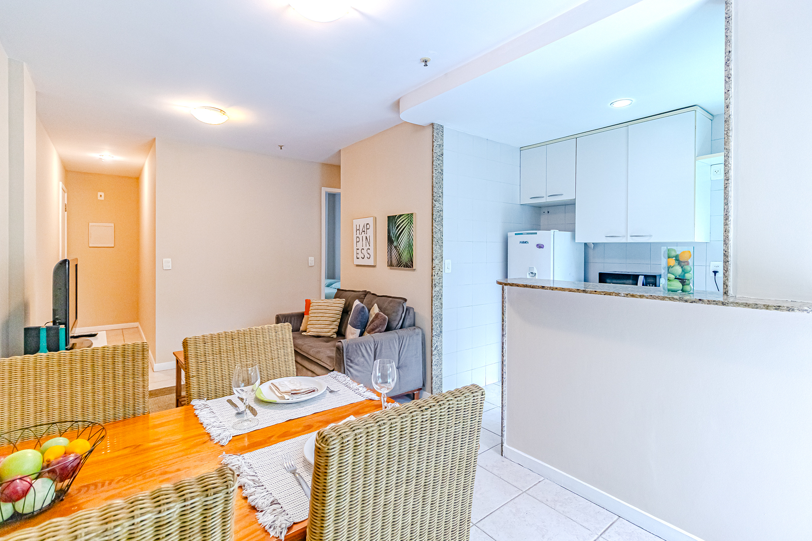 Como o condomínio é um residencial com serviços, oferece serviço de arrumação diária já incluso no condomínio e, se você precisar, oferece também o serviço de lavanderia pay-per-use.