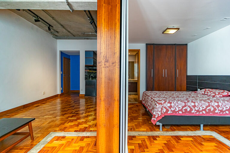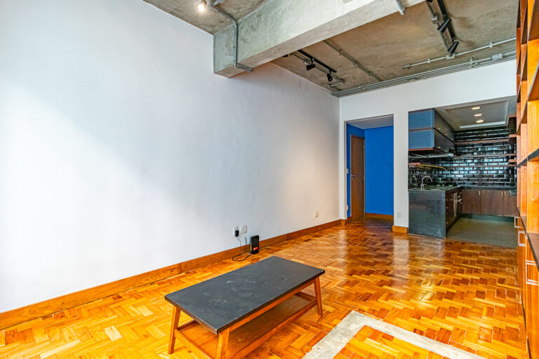 Este quarto e sala é um apartamento perfeito para pessoas solteiras e casais sem filhos, que buscam uma decoração moderna com estilo industrial, cômodos amplos e localização estratégica ao lado do Rio Sul.