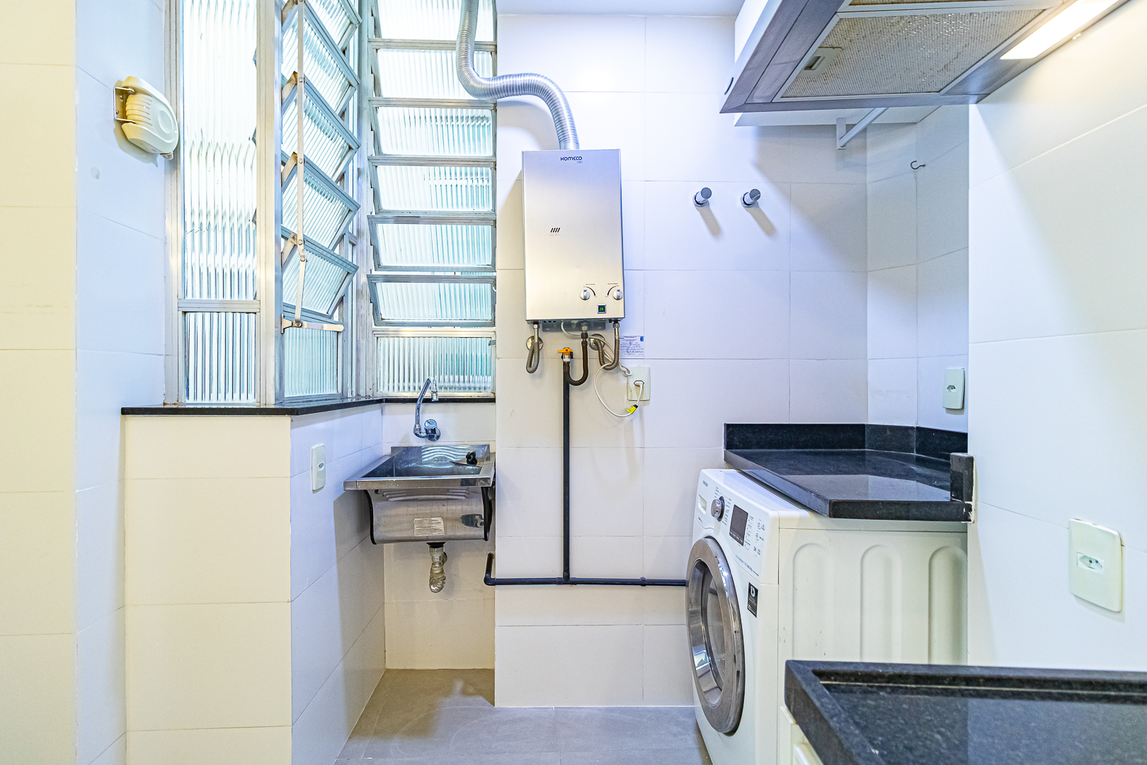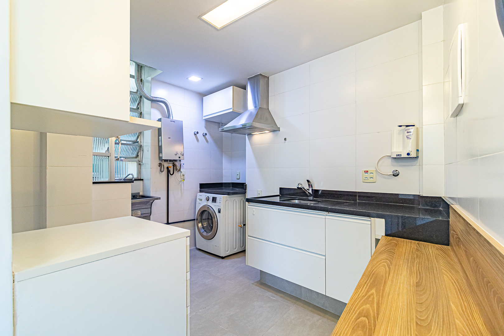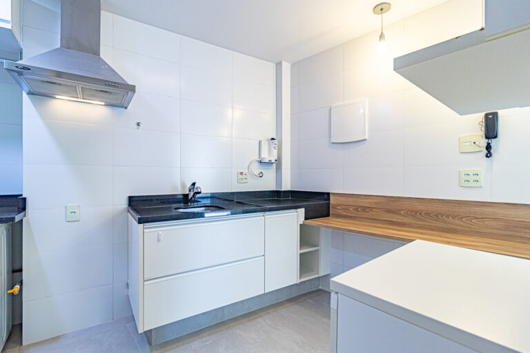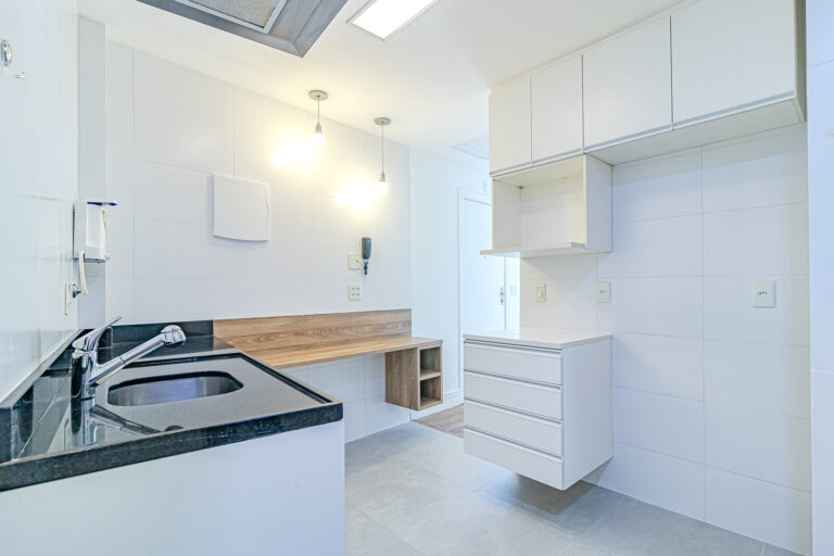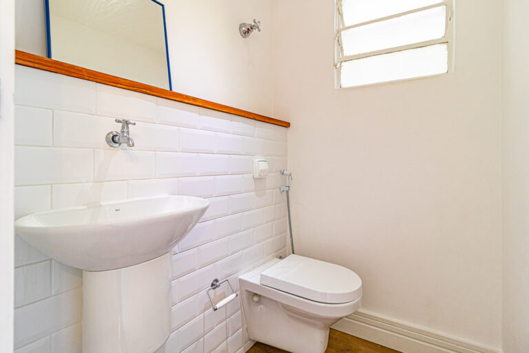 Tanto o banheiro, quanto o lavabo, são ventilados naturalmente e a cozinha é bem espaçosa, contando com um espaço separado para área de serviço.