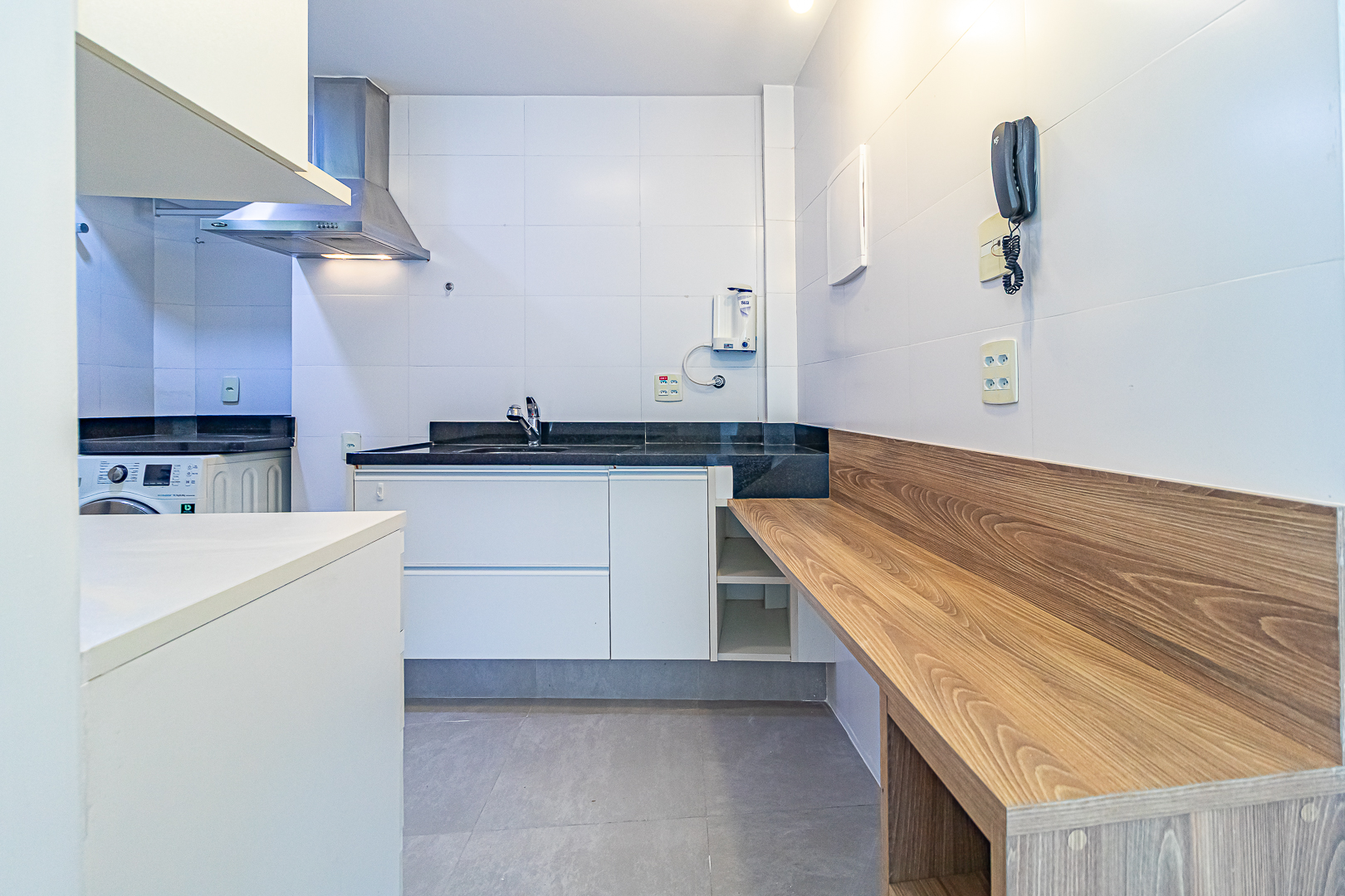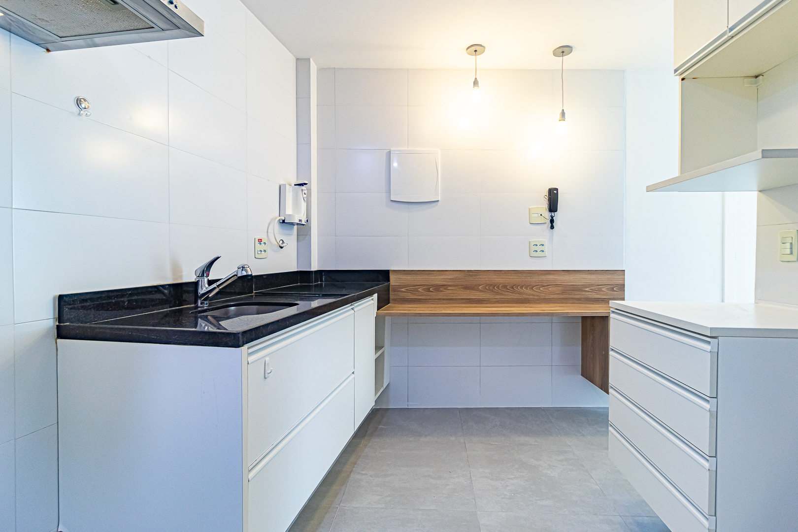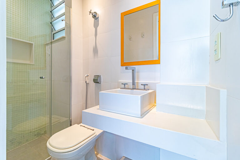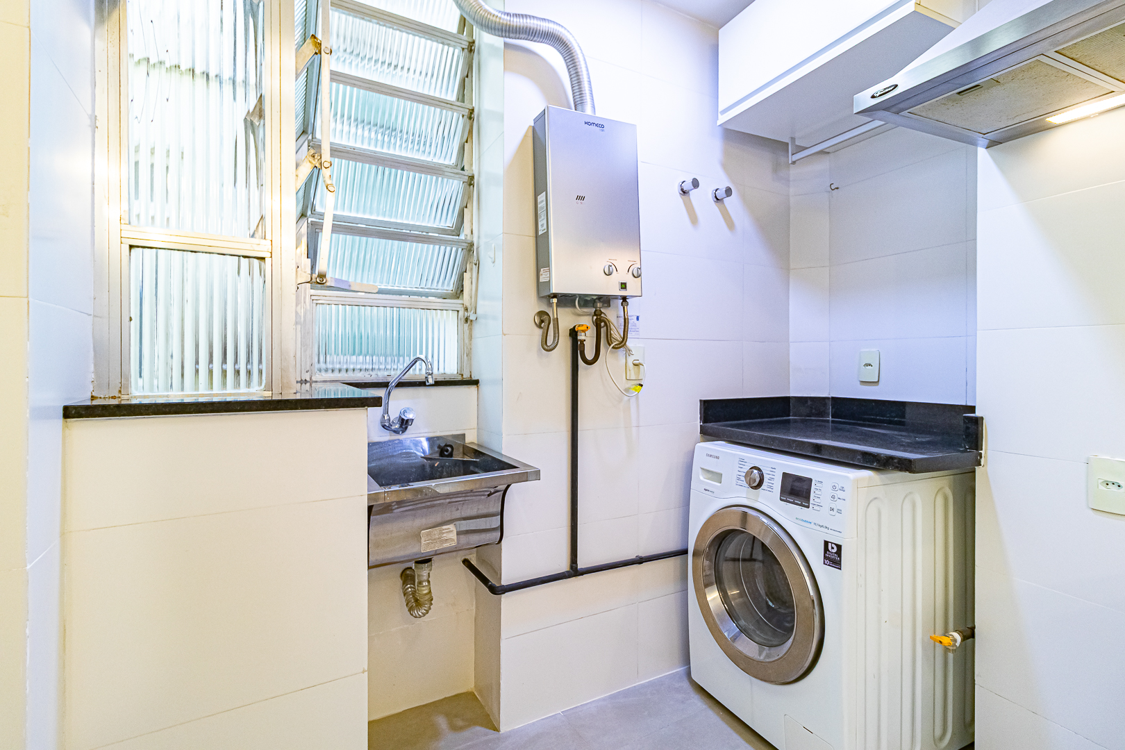 Tanto o banheiro, quanto o lavabo, são ventilados naturalmente e a cozinha é bem espaçosa, contando com um espaço separado para área de serviço.