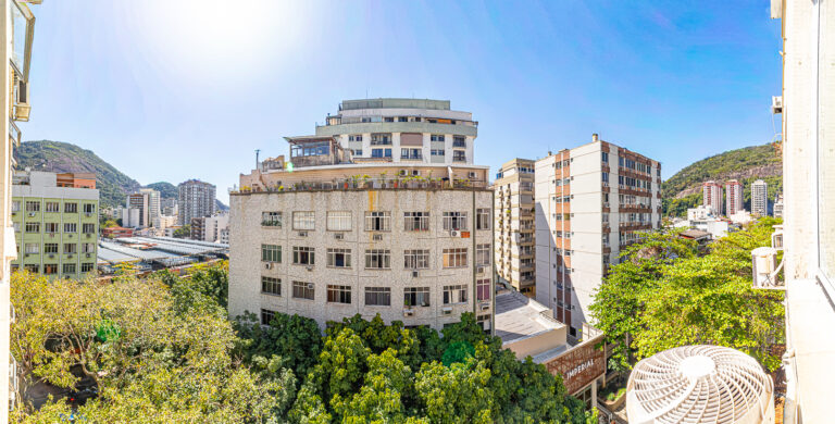 O imóvel de 52m², fica localizado na Rua General Dionísio, esquina com a Voluntários da Patria, ao lado da Cobal. Como ficam andar alto, tem vista livre e é super iluminado.