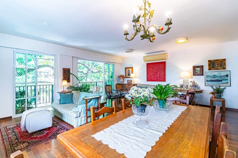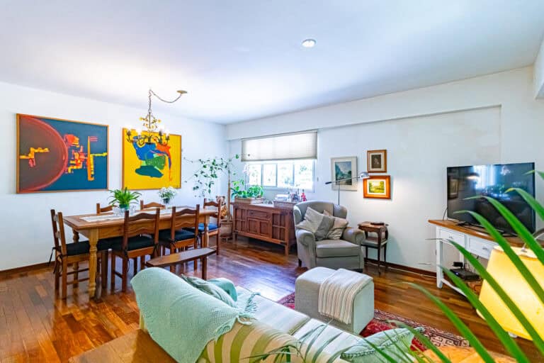 A sala é um cartão de visitas para receber os amigos. É bastante ampla e iluminada, com janelas em 2 paredes distintas. Conta com 3 ambientes e uma varanda deliciosa, praticamente embaixo da árvore. O apê é tão aconchegante, que até o lavabo tem janela.
